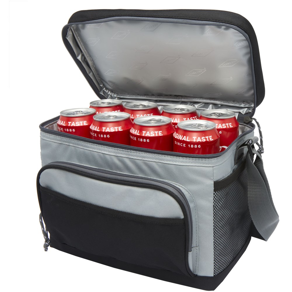 12-Dosen-Kühltasche mit SuperFoam®-Isolierung, um den Inhalt kühl zu halten, und einem auslaufsicheren Ultra Safe®-Futter, das sich leicht reinigen lässt. Das Äußere umfasst 3 Zubehörtaschen, einen Tragegriff und einen verstellbaren Schultergurt.