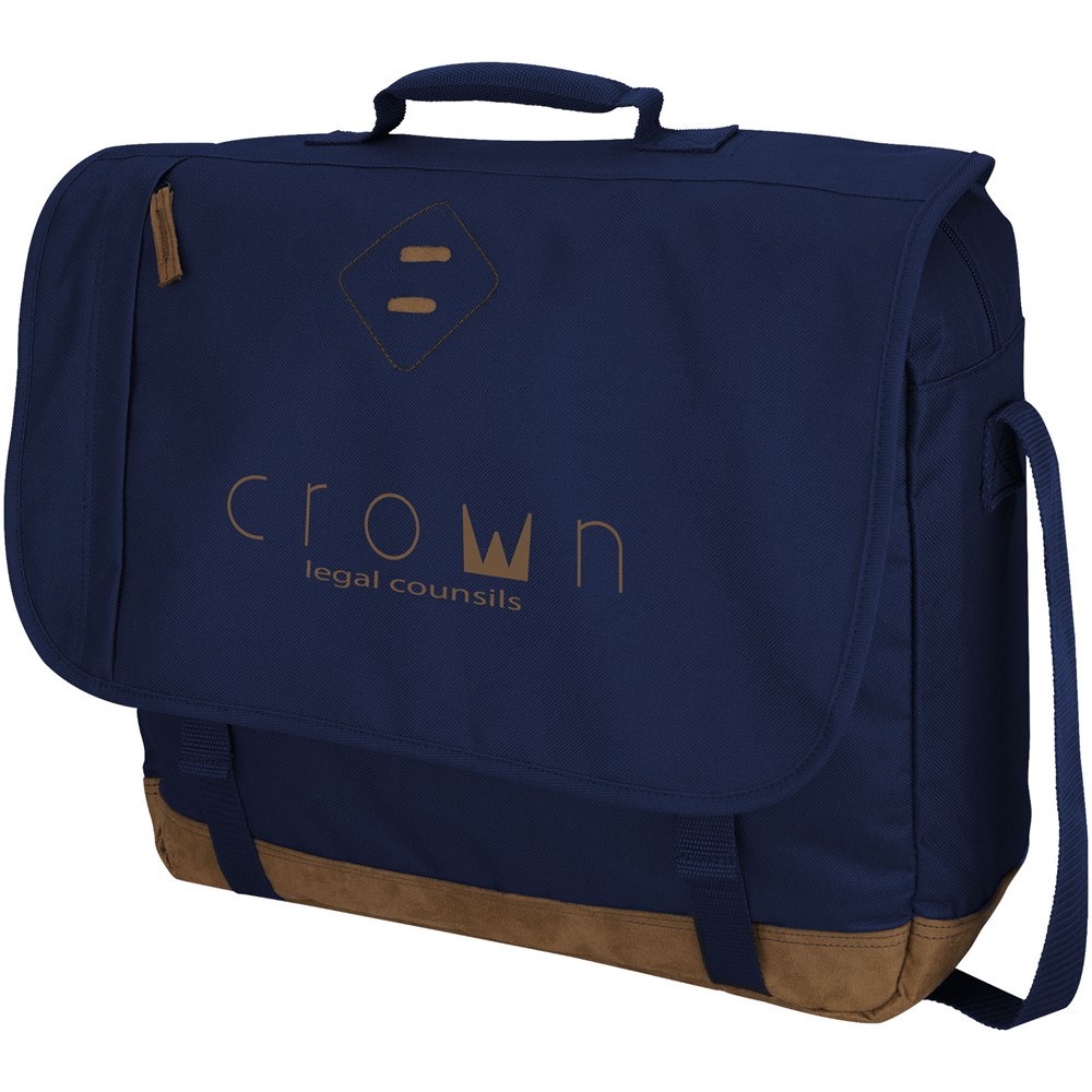 Schultertasche im exklusiven Design. Das Hauptfach mit Reißverschluss verfügt über eine gepolsterte Laptophülle, in die die meisten 15.4" Laptops passen, und eine gepolsterte Tablethülle für 10"-Tablets. Neben diesen Hüllen ist im Hauptfach genug Platz für das Mitnehmen von Büchern, Akten und Ordnern. Die Klappe der Schultertasche verfügt über eine senkrechte Reißverschlusstasche und einen Rüssel zum Unterbringen von kleinem Zubehör wie Schlüsselanhängern und Karabinern. Die Klappe kann mit einstellbaren Schnallen befestigt werden. Verstellbarer Schulterriemen mit Schulterpolster für zusätzlichen Komfort.