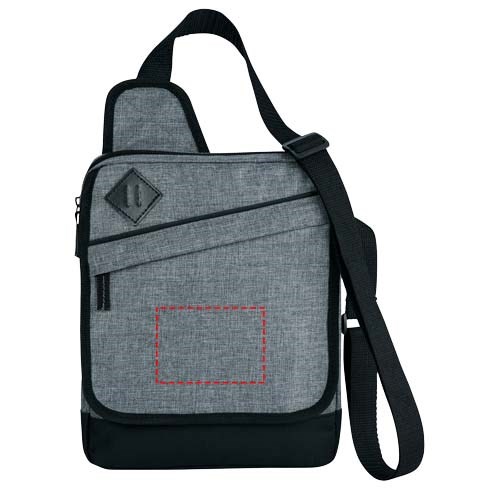 Gepolstertes Hauptfach für ihr iPad oder Tablet. Einschubtasche auf der Vorderseite mit verdecktem Reißverschluss und weitere offene Einschubtasche darüber. Verstellbarer Schultergurt.