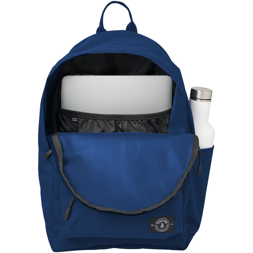 Die Außenseite der Tasche besteht aus 100 % recycelten Wasserflaschen. Ausgestattet mit einem großen Hauptfach mit einer 13-Zoll-Laptophülle. Wird mit gepolsterten Mesh-Trägern, Wasserflaschenfach und einer sicheren Vordertasche mit Reißverschluss geliefert. Kapazität: 25 Liter.