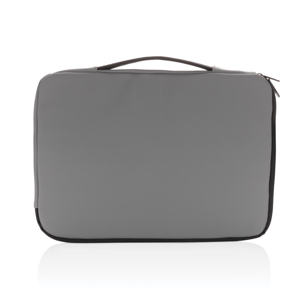 Dieses schicke 15,6-Zoll-Lptop-Sleeve sieht elegant aus und ist geräumiger als erwartet. Auf der Vorderseite befinden sich mehrere Reißverschlusstaschen, in denen Sie Ihr Laptop-Zubehör und Ihr Notizbuch verstauen können. Oben finden Sie einen Griff zum einfachen Tragen. Außen 100% VE. Innen aus 100% 210D Polyester. PVC-frei.