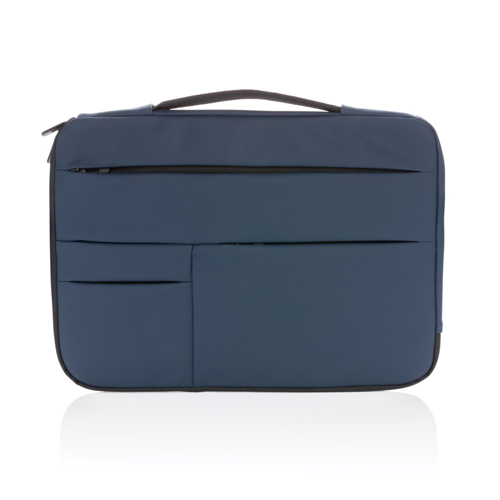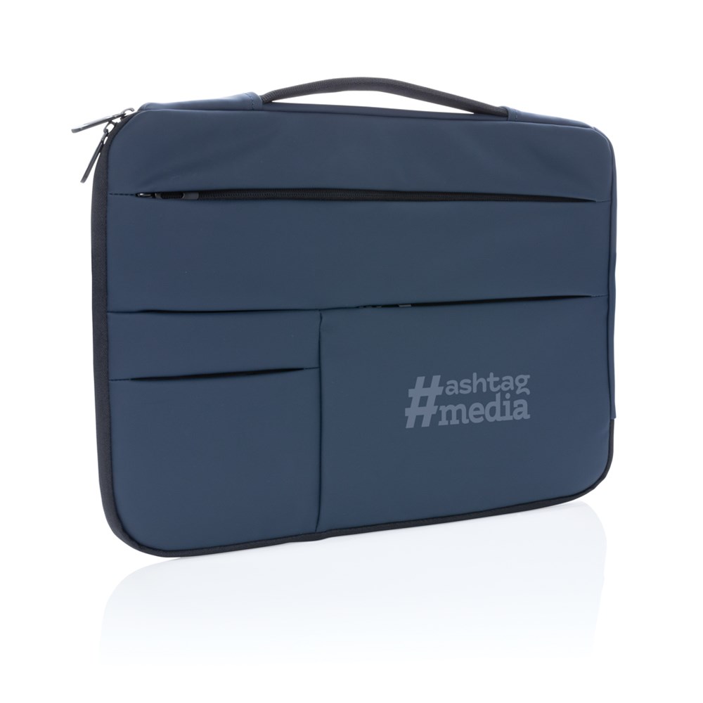 Dieses schicke 15,6-Zoll-Lptop-Sleeve sieht elegant aus und ist geräumiger als erwartet. Auf der Vorderseite befinden sich mehrere Reißverschlusstaschen, in denen Sie Ihr Laptop-Zubehör und Ihr Notizbuch verstauen können. Oben finden Sie einen Griff zum einfachen Tragen. Außen 100% VE. Innen aus 100% 210D Polyester. PVC-frei.
