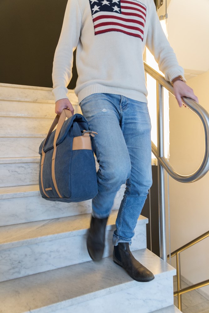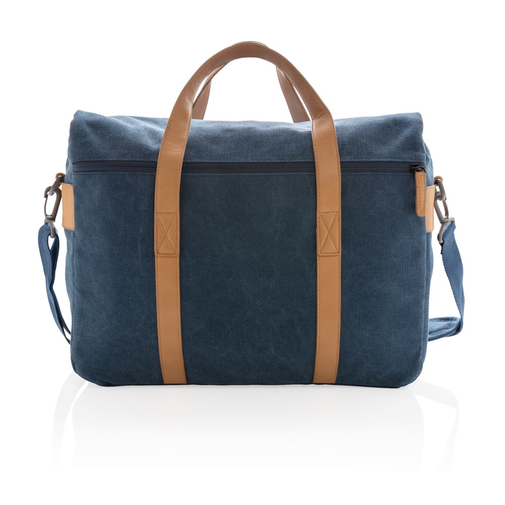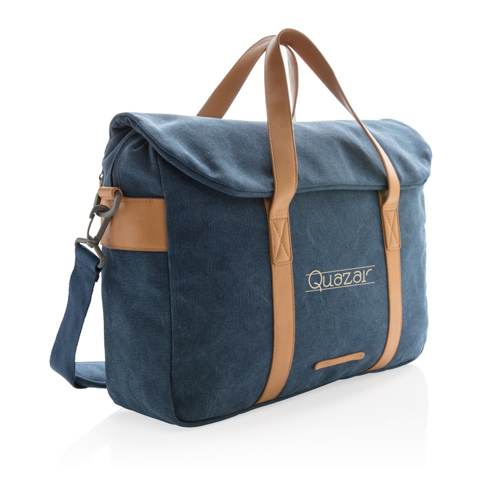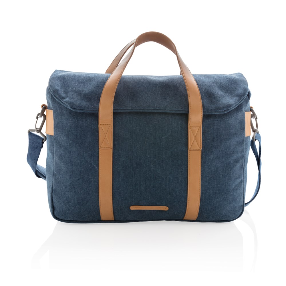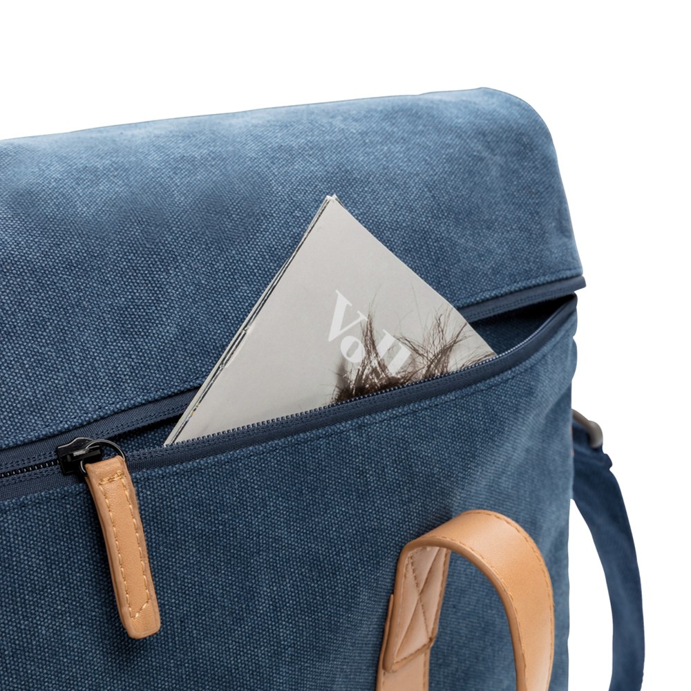 Lässige Tasche aus gepolstertem Canvas zum Schutz Ihres Laptops. Mit stylischen Applikationen aus Kunstleder. Für Laptops bis 15.6", sowie Ihre Dokumente und Tablet. Inkl. Abnehmbarem und verstellbarem Schultergut. PVC-frei.