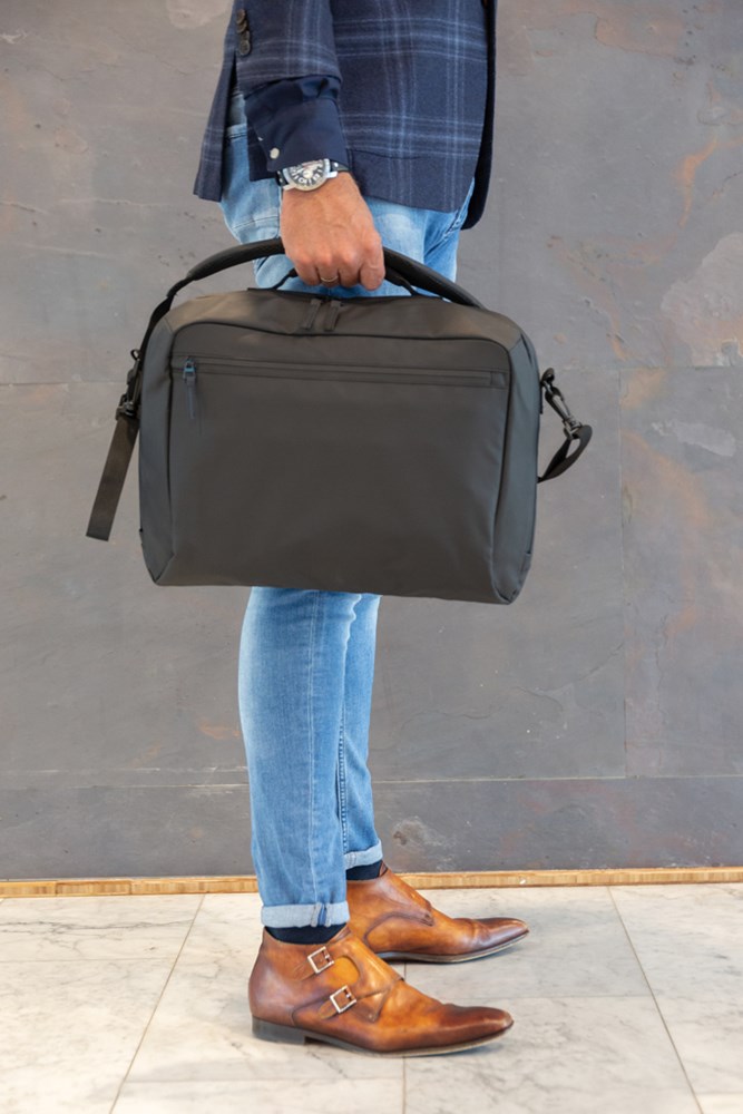 Einfach stylisch ist diese ganz in schwarz gehaltene Laptoptasche aus PU mit einem großen Hauptfach und einem 15.6" Laptopfach. PVC-frei.
