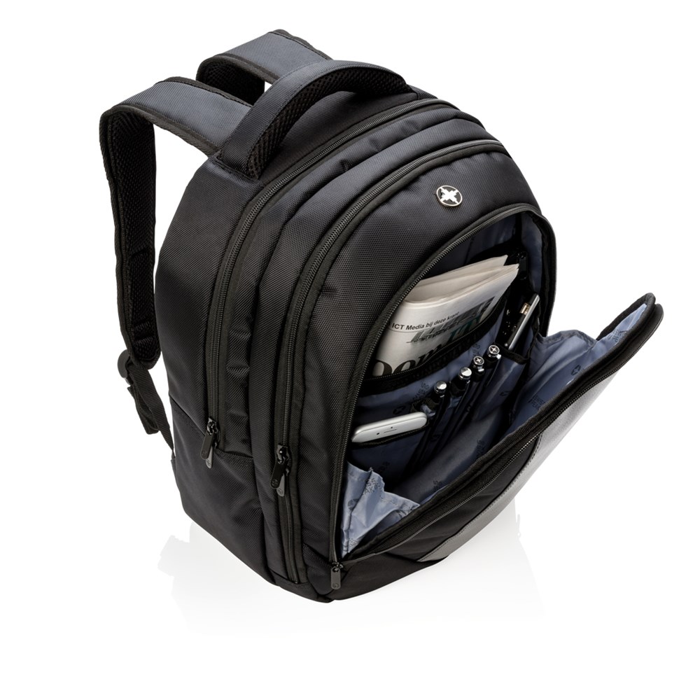 Schützen Sie Ihren Laptop im neuen dynamischen Design. Ihr Rücken und Laptop werden durch das doppelt gepolsterte Laptopfach geschützt. Das einzigartige Design bietet zudem weitere Fächer und Organizer, die alle mit Reißverschlüssen geschlossen werden können. Geschütztes Design®