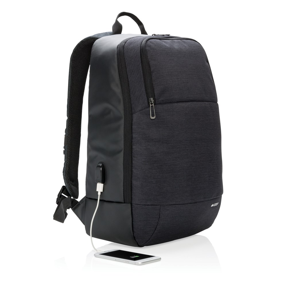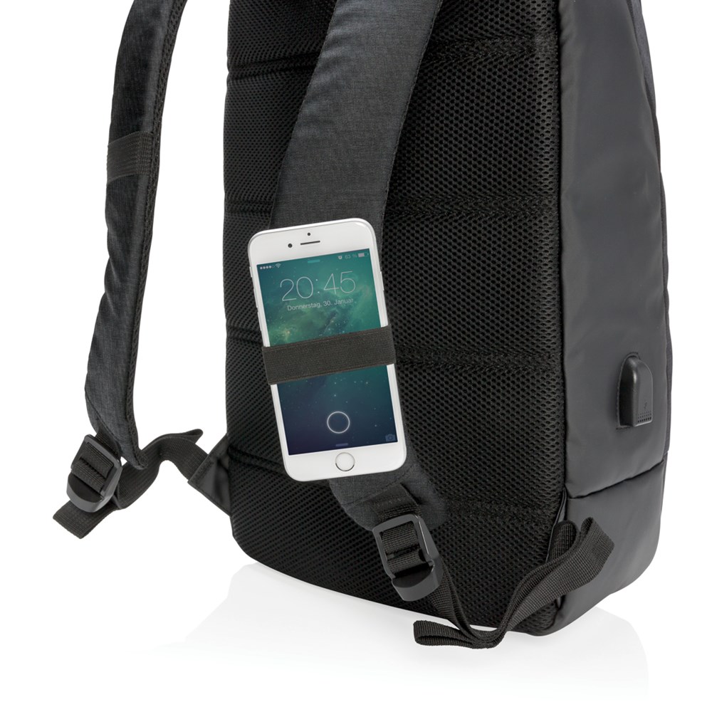 Modischer “Two-Tone” Polyester Rucksack für 15” Laptops mit einem Hauptfach und einer Fronttasche. Verbinden Sie auch Ihre Powerbank über den integrierten USB-Port und laden Sie Ihr Smartphone “on-the-go”. An den Trageriemen sogar noch ein Saugnapfsystem um während des Telefonierens nicht mal das Smartphone festhalten zu müssen.