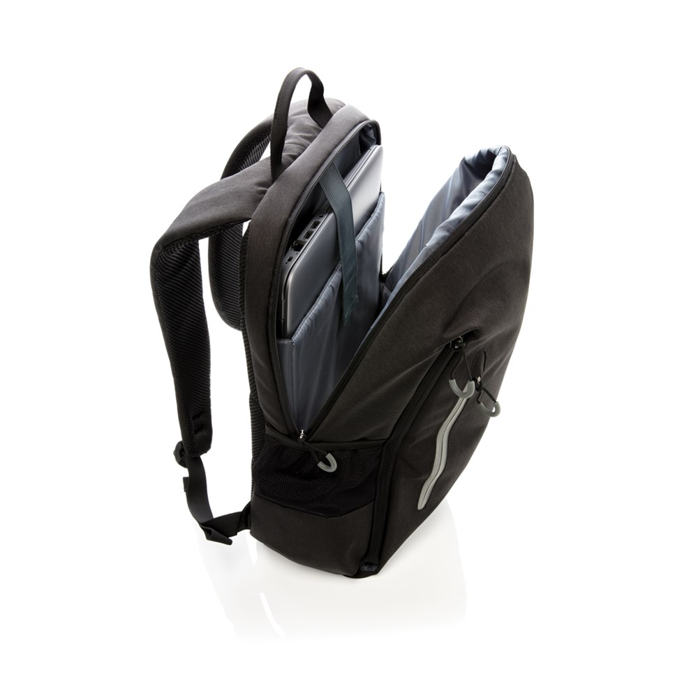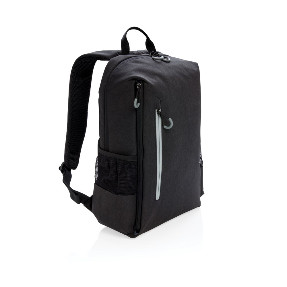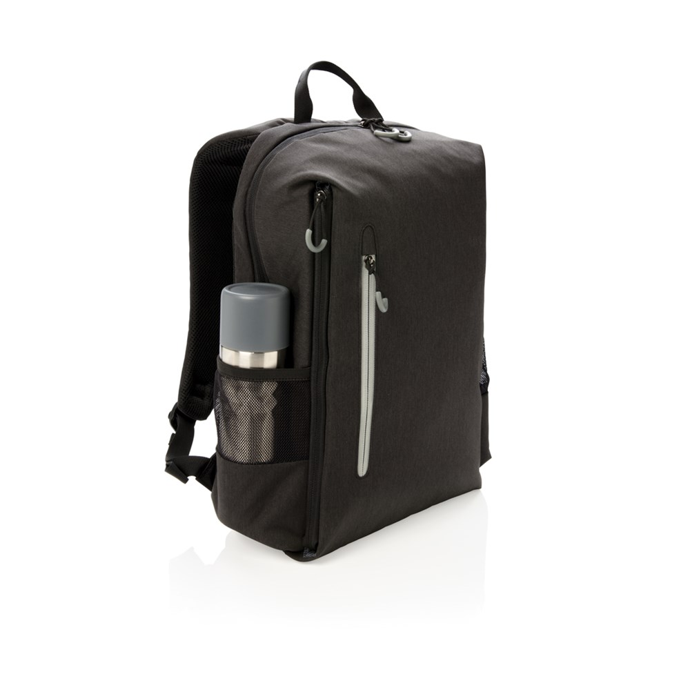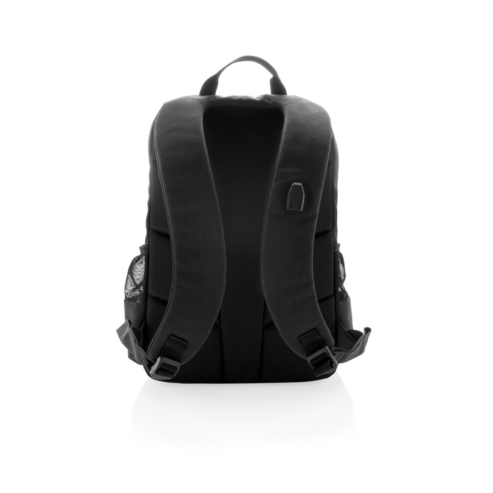 Praktischer Rucksack für alle Situationen mit 2 Seitenfächern für Ihre Getränkeflasche oder Ihren Regenschirm. Mit USB-Ladeport am Schulterriemen, gepolstertem 15,6" Laptopfach und weiteren kleinen Fächern für all Ihre Accessoires, sowie einem RFID geschützten Fach. Registered design®