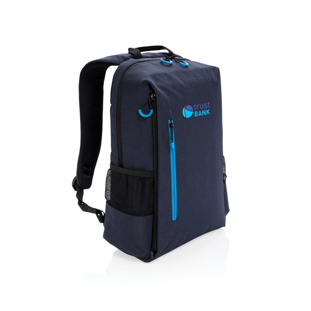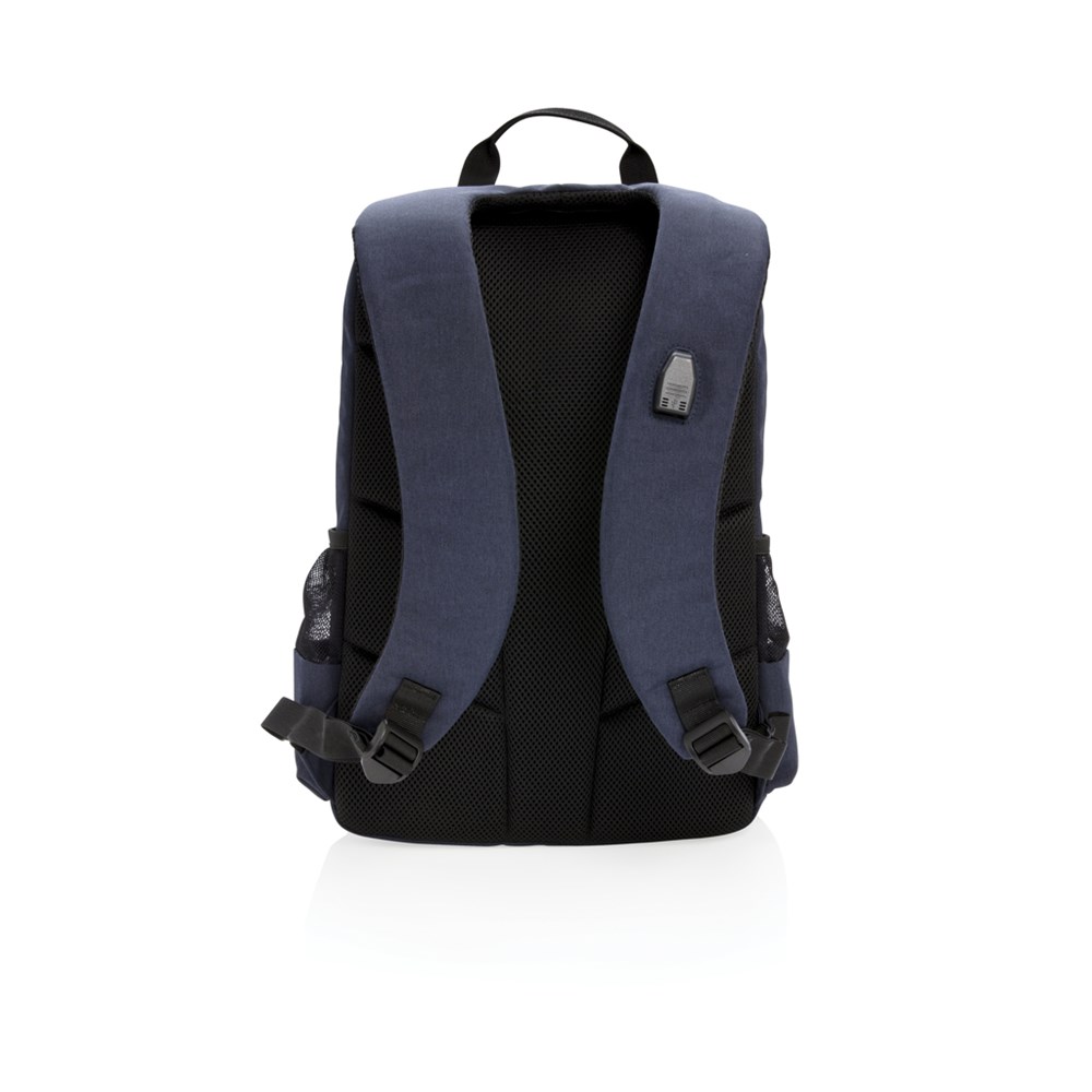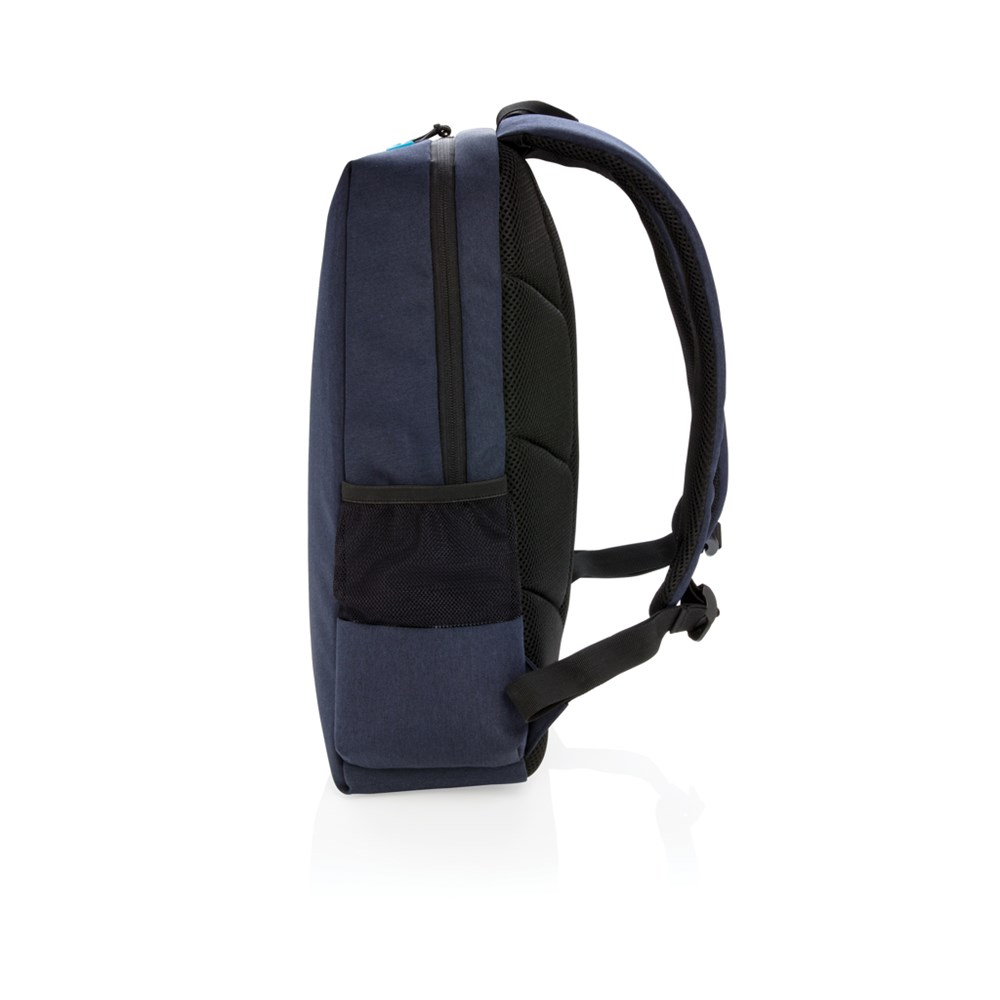 Praktischer Rucksack für alle Situationen mit 2 Seitenfächern für Ihre Getränkeflasche oder Ihren Regenschirm. Mit USB-Ladeport am Schulterriemen, gepolstertem 15,6" Laptopfach und weiteren kleinen Fächern für all Ihre Accessoires, sowie einem RFID geschützten Fach. Registered design®