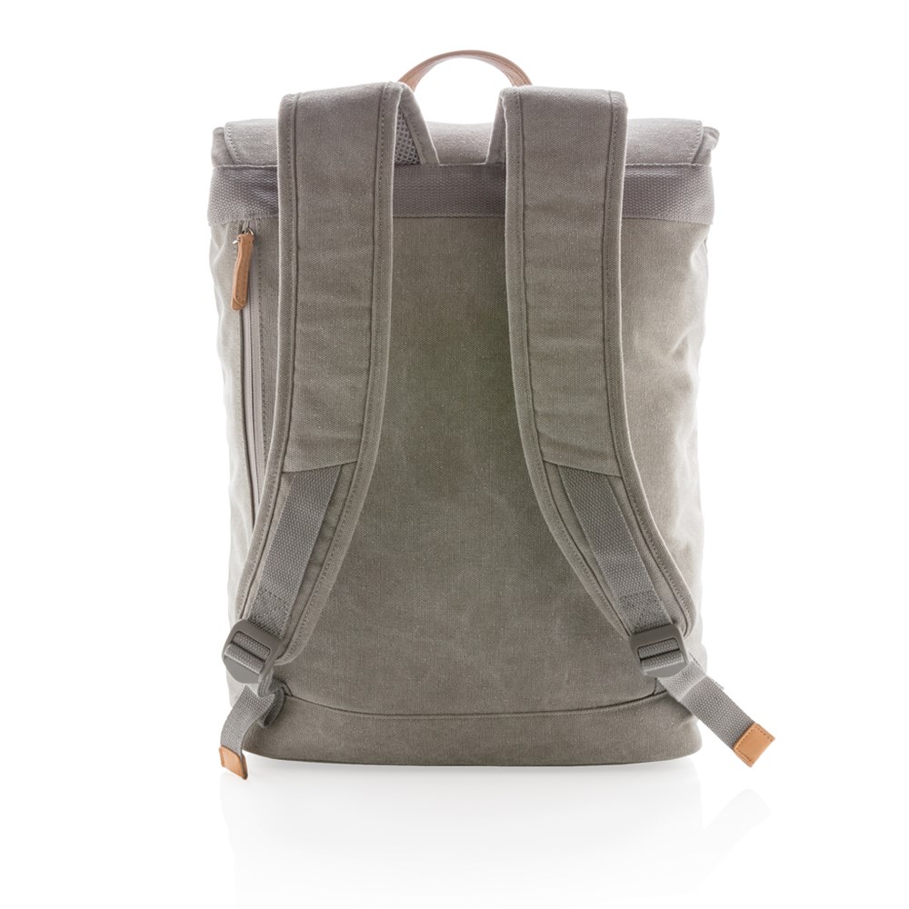 Der Canvas Rucksack mit gepolstertem 15.6" Laptopfach ist perfekt für alle Ausflüge. Den Überwurf schließen Sie mit zwei Magnetschnallen aus Kunstleder. PVC-frei