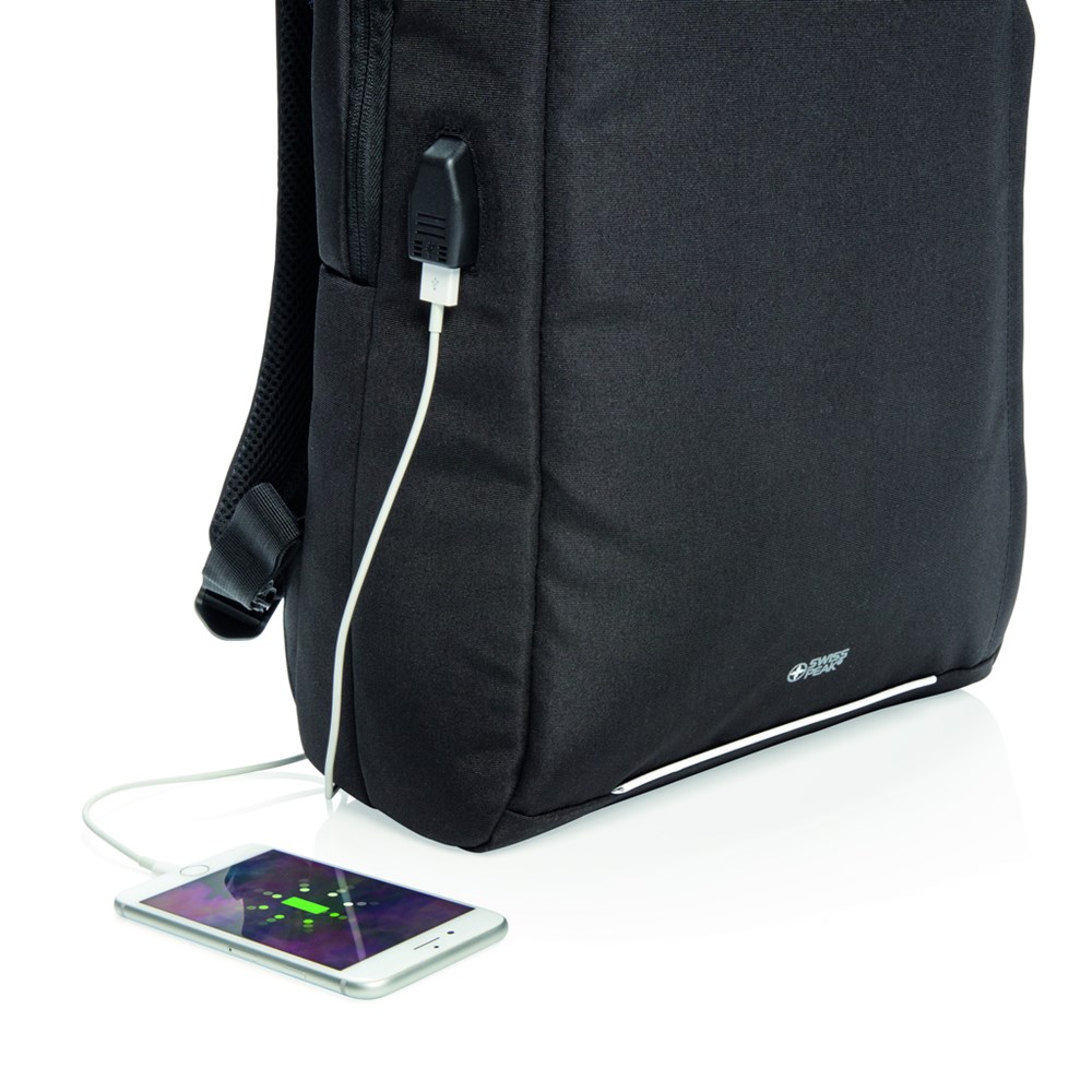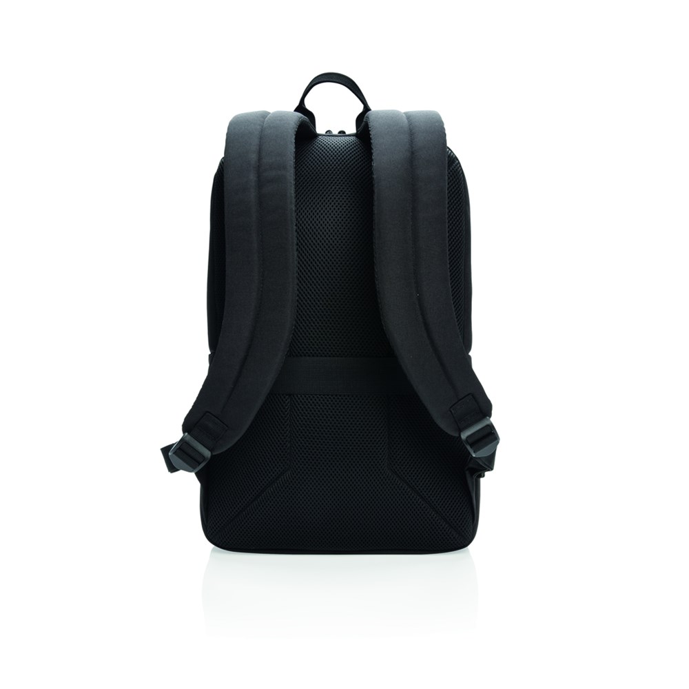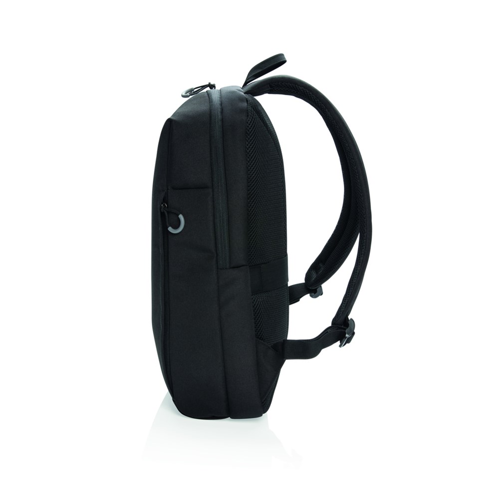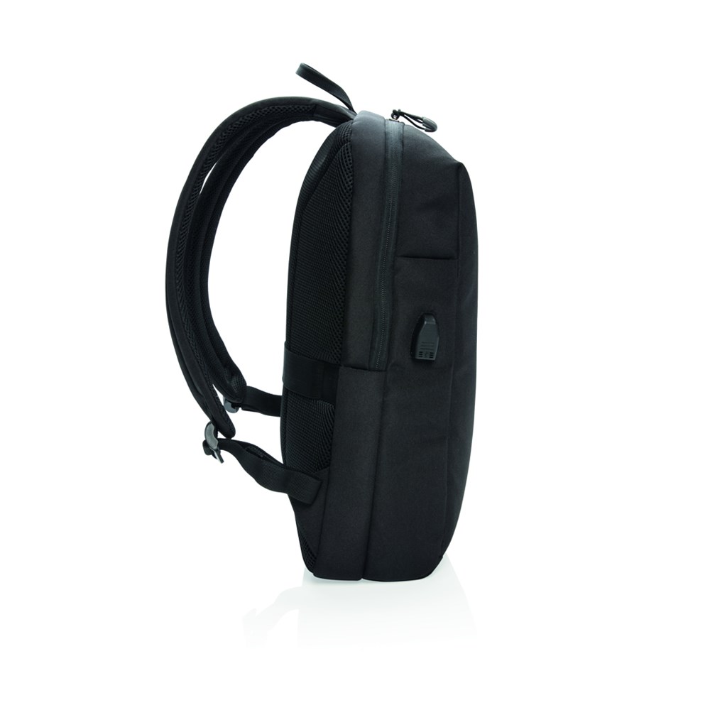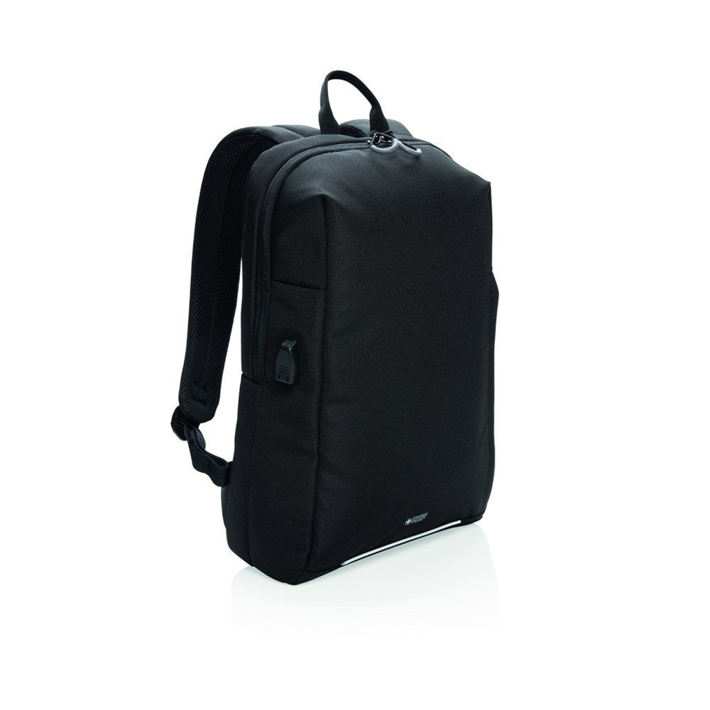 Ein Laptop-Rucksack für Geschäfts- und Wochenendtrips mit einem gepolsterten Fach für Ihren 15.6" Laptop, sowie einem Trolley-Riemen und USB-Port. Zudem eine Seitentasche mit RFID-Schutz und einem reflektierenden Sicherheitsstreifen auf der Front. PVC-frei
