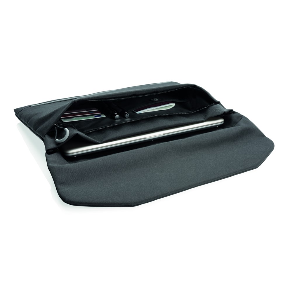 Stylischer und sicherer können Sie Ihren Laptop kaum transportieren. Der Überschlag dieses gepolsterten Laptop-Sleeve wird mit einem Magnet verschlossen. Die Vorderseite ist mit reflektierenden Sicherheitsstreifen versehen. Innen ein, mit einem Reißverschluß, verschlossenes Fach und einer RFID geschützten Tasche.