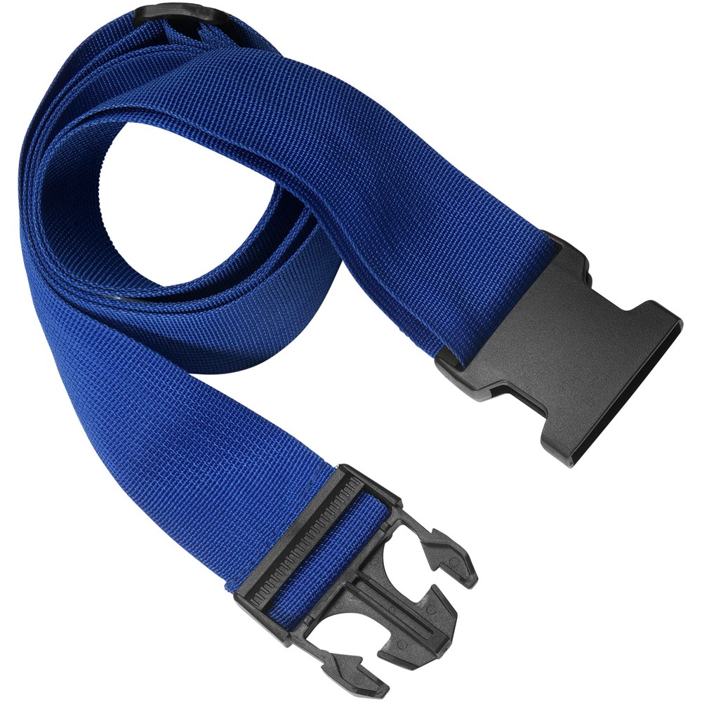Hochbeanspruchbarer Gepäckriemen mit sicherem Schnallenverschluss. Der Riemen kann auf jede beliebige Länge zwischen 90 cm und 180 cm eingestellt werden.
