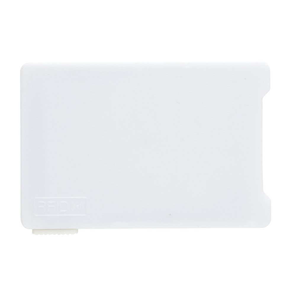 Dieser RFID-Karthalter schützt bis zu 4 Karten oder bis zu 3 mit Prägung vor unerwünschtem Datendiebstahl. Der Schieber auf der Seite bringt die Karten zum Vorschein. Registered design®