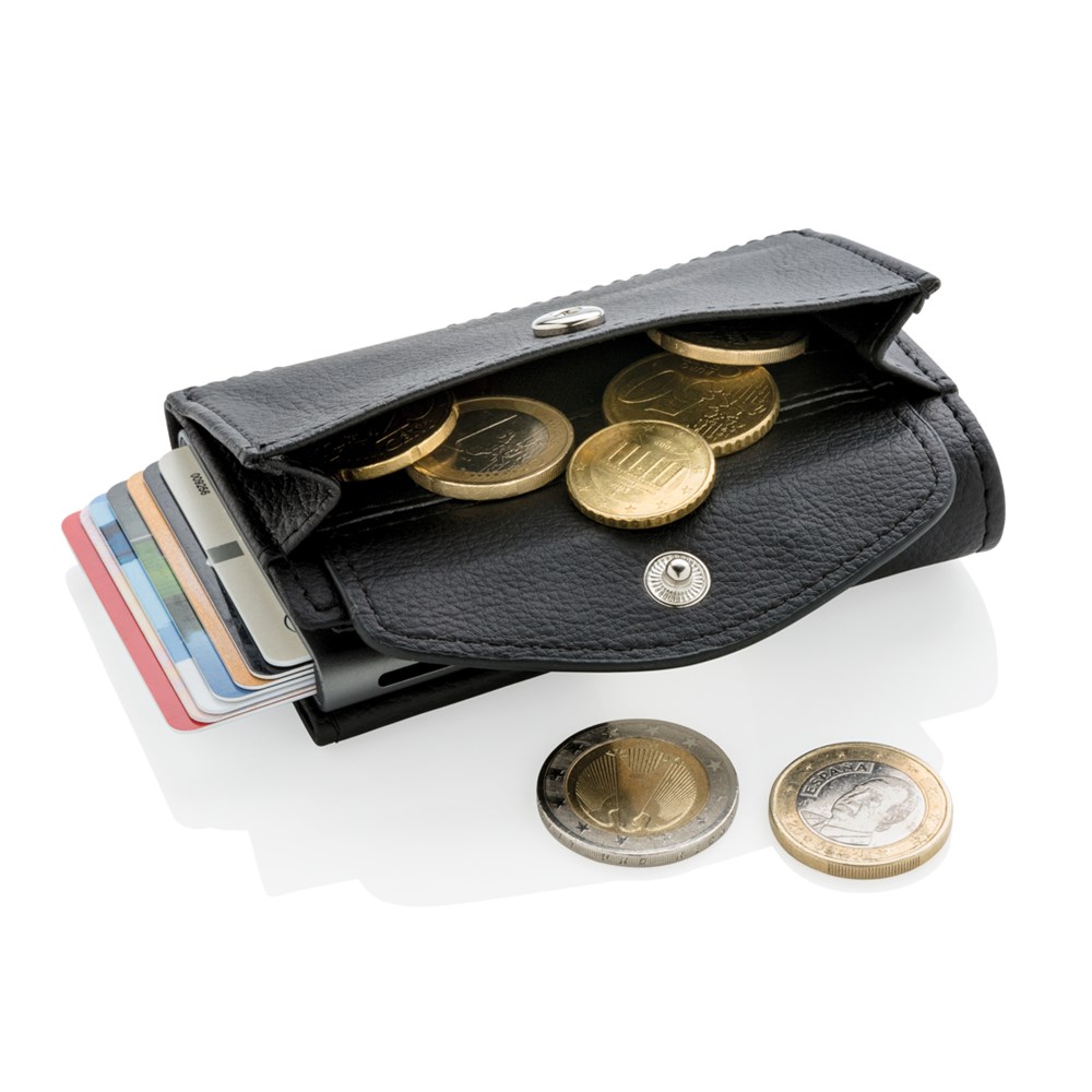 Dieser solide Kartenhalter aus Aluminium schützt Ihre wichtigsten Karten vor RFID-Angriffen. Nie wieder gebrochene oder verbogene Karten. Passend für 7 Karten oder 5 geprägte Karten. Mit einfachem Schiebemechanismus um an die Karten zu gelangen. Ein weiteres Fach bietet Ihnen Platz für Ihre Münzen oder Schlüssel.