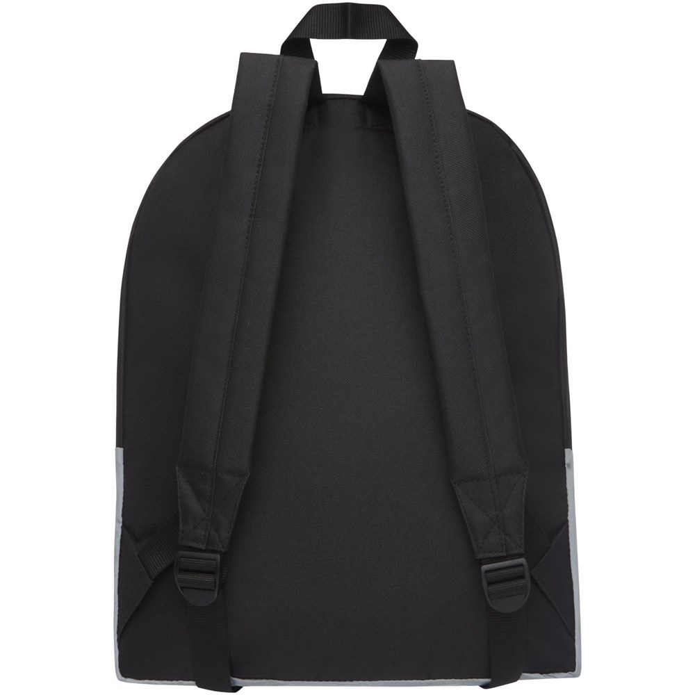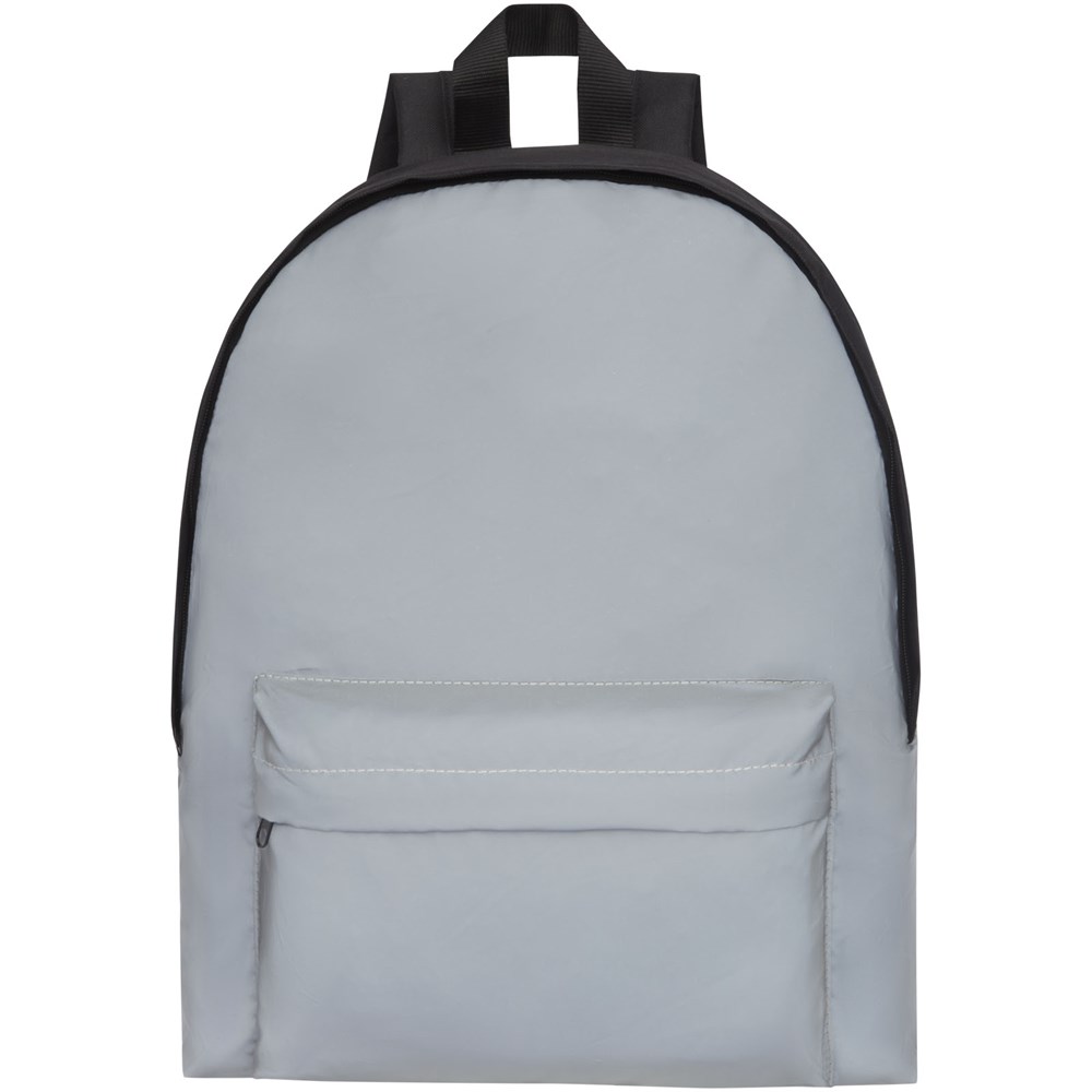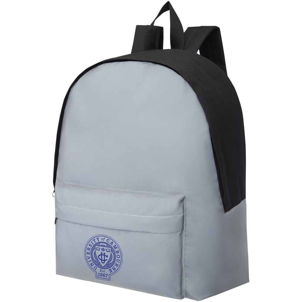 EN 13356 certified reflective backpack. Large main compartment with zipper closure and front zipper pocket. Features a full reflective front side to provide visibility and safety when on the go. Resistance up to 10 kg weight.