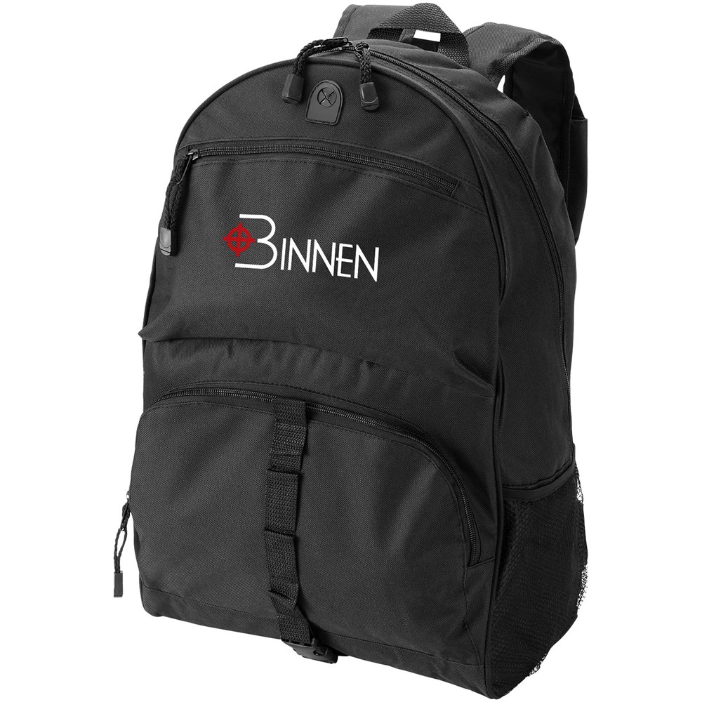 Rucksack mit gepolsterten Schulterriemen, Netztaschen auf beiden Seiten, abnehmbarer Handyhülle, Fronttasche mit Reißverschluss für MP3/MP4-Player und mehreren kleinen Haken für Schlüssel und Ohrhöreröffnung.