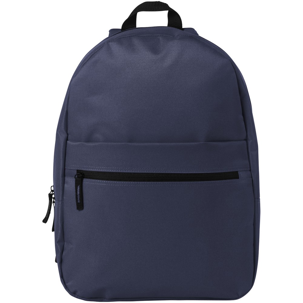 Rucksack mit großem Hauptfach und Reißverschluss, Fach auf der Vorderseite mit Reißverschluss und Fach mit Klettverschluss, verstellbare, gepolsterte Schulterriemen und verstärkter Tragegriff oben.