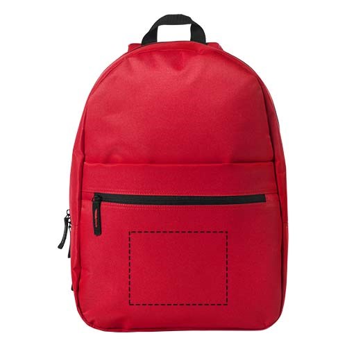 Rucksack mit großem Hauptfach und Reißverschluss, Fach auf der Vorderseite mit Reißverschluss und Fach mit Klettverschluss, verstellbare, gepolsterte Schulterriemen und verstärkter Tragegriff oben.