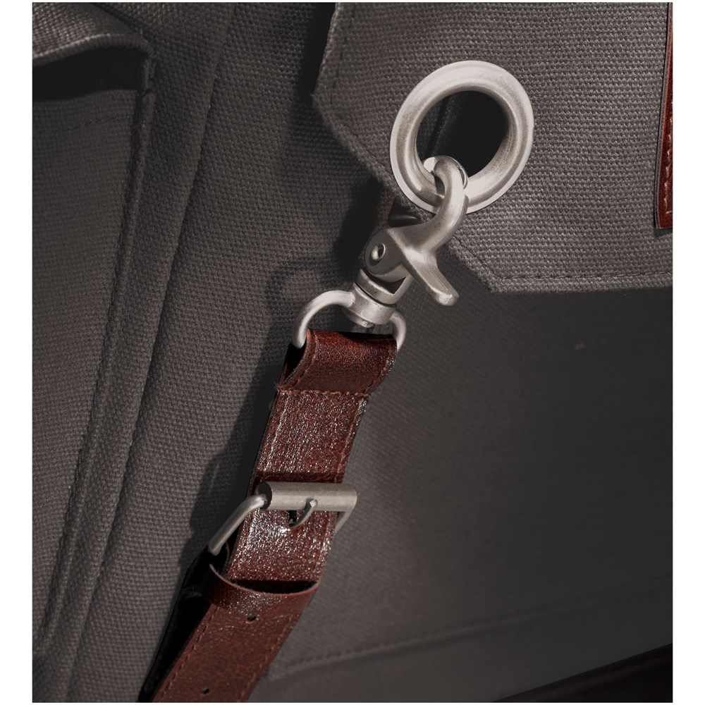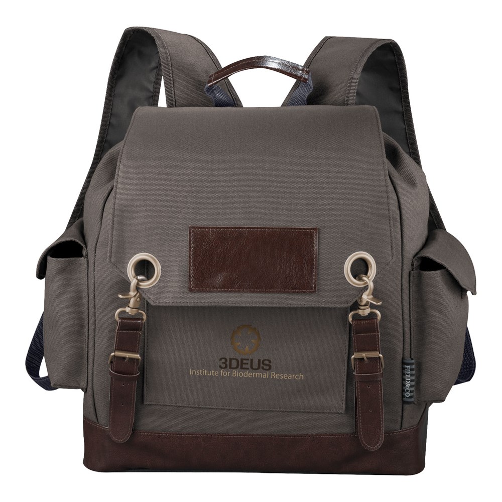 Rucksack im exklusiven Design, mit einem offenen Hauptfach mit Kordelzugverschluss. Die Schutzklappe wird mit einem künstlich gealterten Silber-Verschluss verschlossen. Die vordere Tasche ist offen mit einer Stiftschlaufe. Seitliche Taschen zum Umklappen mit Klettverschlüssen. Verstellbare Rucksackgurte und Tragegriff. Einzigartige Vintage-Branding-Elemente und Zubehör von Field & Co.™.