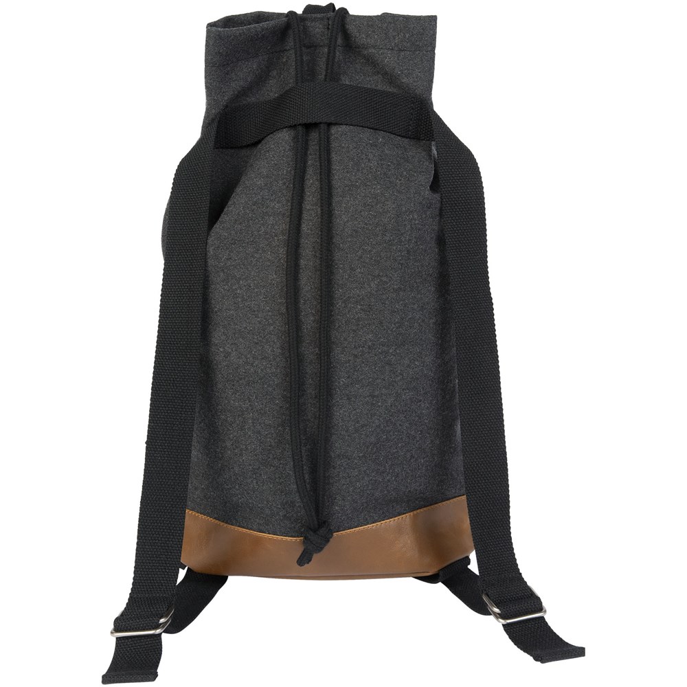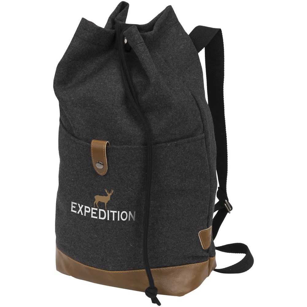 Diese Tasche verfügt über ein Wolle/Polyester-Material mit Vinylakzenten, die dem Rucksack mit Kordelzug ein softes Erscheinungsbild verleihen. Mit Kordelzug-Verschluss oben, Fronttasche mit Schnappverschluss und einem Tragegriff auf der Rückseite können Sie die Tasche überall mit hinnehmen. Teil der Field & Co.® Campster-Serie.