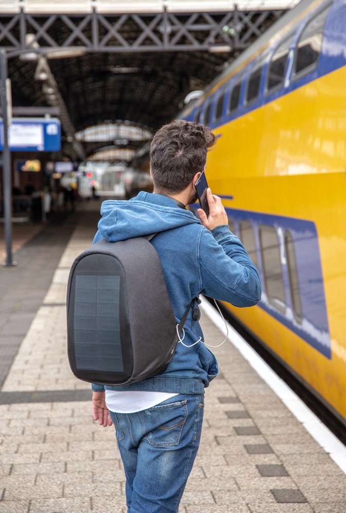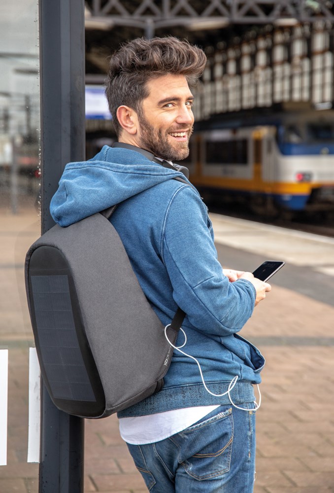 Der Bobby Tech ist der ulimative Rucksack für alle Technik-Fans. Er verbindet Sicherheit mit Komfort und den neusten Technik-Features. Das integrierte Solarpanel sorgt dafür, dass Sie Ihr Smartphone auch unterwegs immer laden können - dies sogar ebenso über ein integriertes Wireless Charging Pad. Die versetzbaren Trennelemente im Inneren schaffen immer wieder veränderbaren Stauraum. Mit patentiertem Fidlock System am Schultergurt mit Halterungen für Ihr Smartphone sowie eine Flasche oder Kaffeebecher. Und natürlich mit den weiteren Bobby Features: versteckte Reißverschlüsse, RFID geschützten Taschen, schnittfestem PP Board im Inneren usw. Der Bobby Pro ist zudem nachhaltig und wird mit AWARE™ Tracer hergestellt. Mit AWARE™ wird die Verwendung von echten recycelten Gewebematerialien und die Behauptung der Wasserreduzierung durch die Verwendung der AWARE-Technologie für disruptive physische Tracer und Blockchain Technologie garantiert. Registered design®