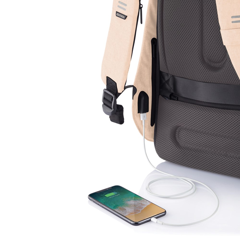 Die Bobby Hero Serie ist die neueste Generation unserer Anti-Diebstahl-Rucksäcke. Sicher, sorgenfrei und organisiert. Weiterhin schnitthemmend, und auch versteckte Reißverschlüsse & Fächer gehören wie gehabt zu den Key-Features. Natürlich ist auch weiterhin der USB-Ladeport integriert, er ist wasserabweisend, hat reflektierende Sicherheitsstreifen, sowie gepolsterte Innenfächer für einen 13,3" Laptop und ein Tablet bis zu 12,9". Hergestellt aus rPET von recycelten PET Flaschen. Der Bobby Pro ist zudem nachhaltig und wird mit AWARE™ Tracer hergestellt. Mit AWARE™ wird die Verwendung von echten recycelten Gewebematerialien und die Behauptung der Wasserreduzierung durch die Verwendung der AWARE-Technologie für disruptive physische Tracer und Blockchain Technologie garantiert. Jeder Bobby Pro spart 12 Liter Wasser und es wurden 21 Plastikflaschen verwendet. Registered design®