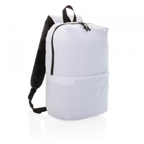 Praktisch und schlicht mit gradlinigem Design hat dieser Rucksack aus strapazierfähigem Polyester ein großes Hauptfach, sowie eine Vortasche für weitere persönliche Kleinigkeiten und zwei Seitentaschen für zum Beispiel einen Schirm oder eine Trinkflasche. PVC-frei.