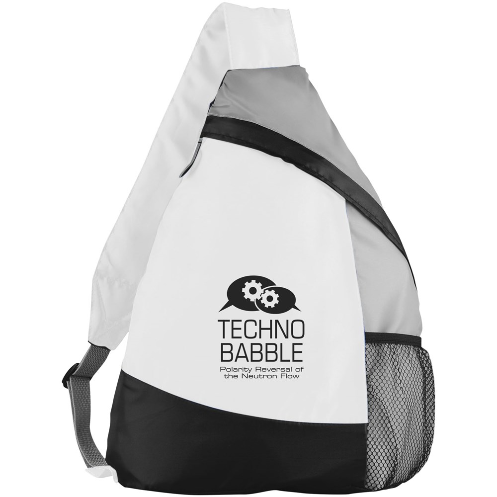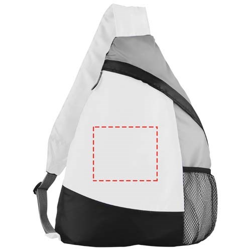 Reißverschluss-Hauptfach mit reflektierenden Akzenten am Reißverschluss Puller. Seitliche Netztasche. Größenverstellbarer, verstärkter gepolsterter Schultergurt.