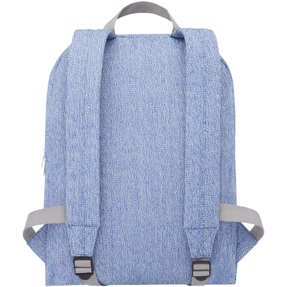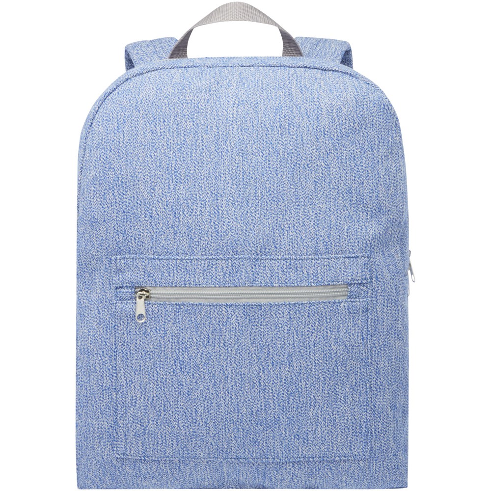 Rucksack aus einer Mischung aus Recyclingbaumwolle und Polyester, mit Fronttasche mit Reißverschluss und gepolsterten verstellbaren Schultergurten. Recycelte Baumwolle wird aus Verbrauchsabfällen hergestellt, die während des Schneidevorgangs in Textilfabriken anfallen. Ähnliche Farben werden miteinander vermischt, sodass keine zusätzliche Färbung erforderlich ist. Aufgrund der Beschaffenheit von Recyclingbaumwolle kann es zu leichten Farbabweichungen kommen. Diese Eigenschaft trägt deutlich zu einem authentischeren Erscheinungsbild bei.