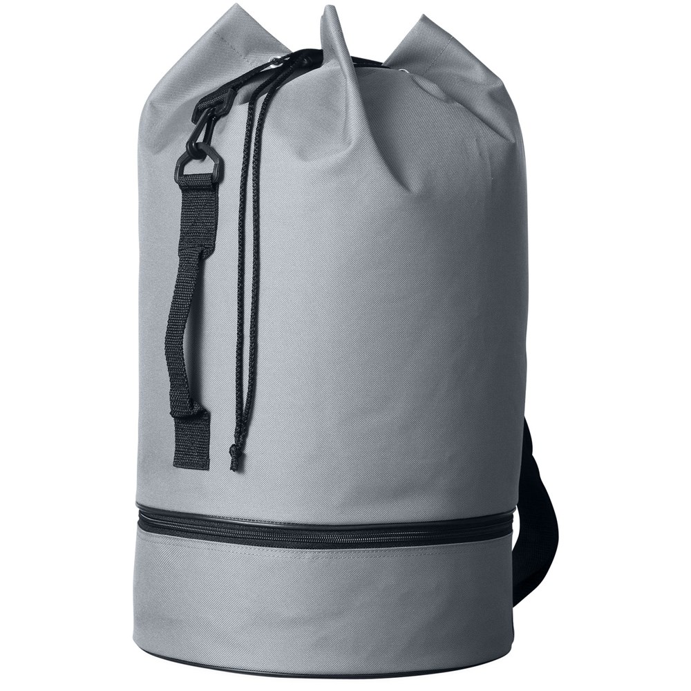 Seesack mit Kordelzugverschluss, seitlichem Griff und einstellbarem Schulterriemen. Mit separatem Reißverschlussfach unten.