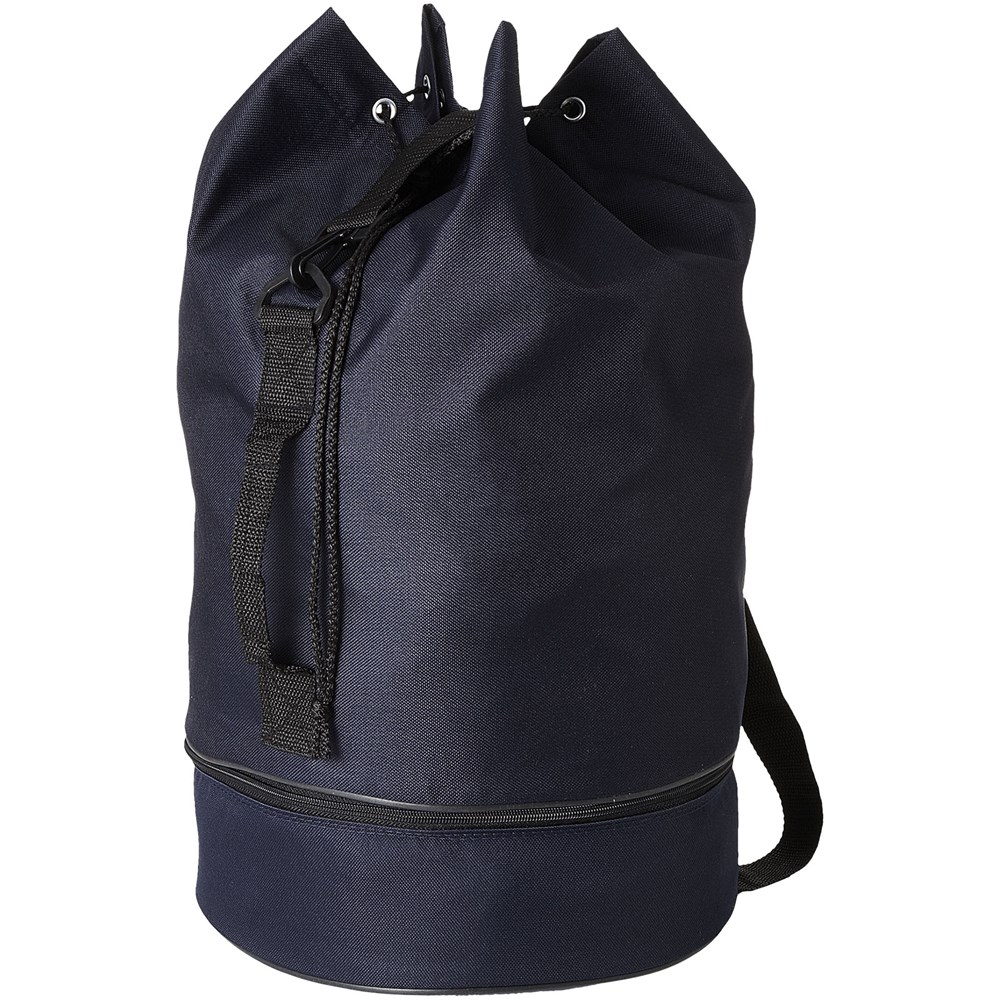 Seesack mit Kordelzugverschluss, seitlichem Griff und einstellbarem Schulterriemen. Mit separatem Reißverschlussfach unten.