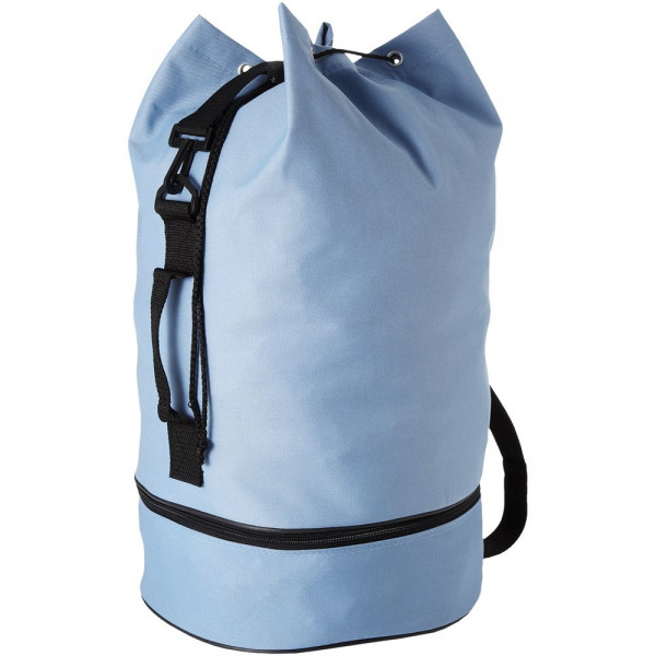 Seesack mit Kordelzugverschluss, seitlichem Griff und einstellbarem Schulterriemen. Mit separatem Reißverschlussfach unten.