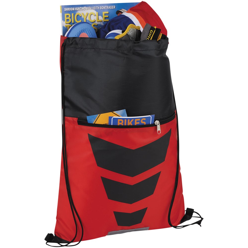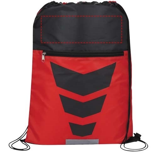 Dieser Kordelzug Rucksack mit attraktivem grafischen Design und reflektierenden Details auf der Vorderseite wird die Sichtbarkeit in der Nacht erhöhen. Das große Hauptfach mit Kordelzugverschluss und das zusätzliche Reißverschlussfach vorne, werden Ihr Eigentum schützen.