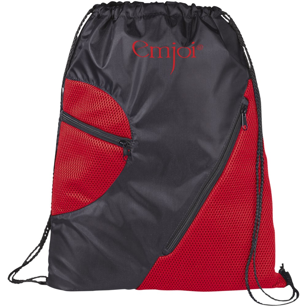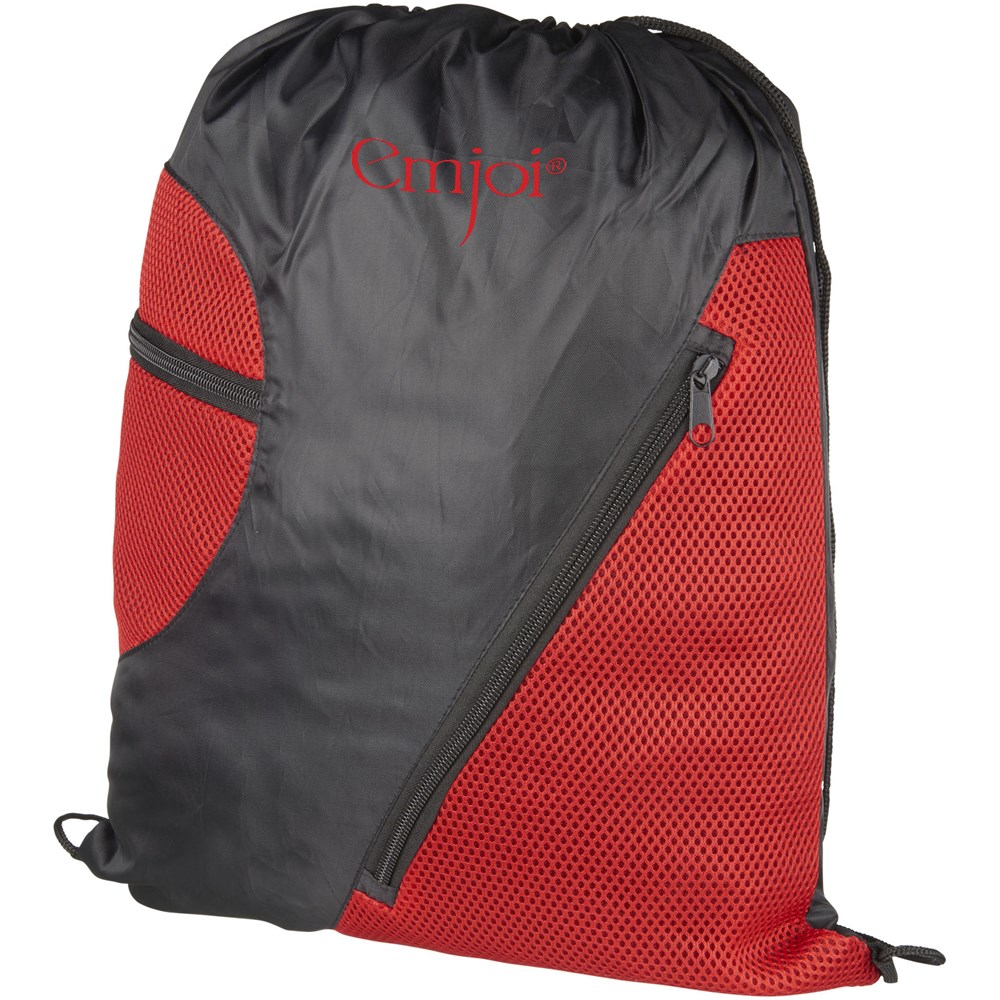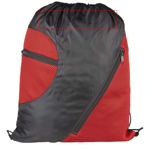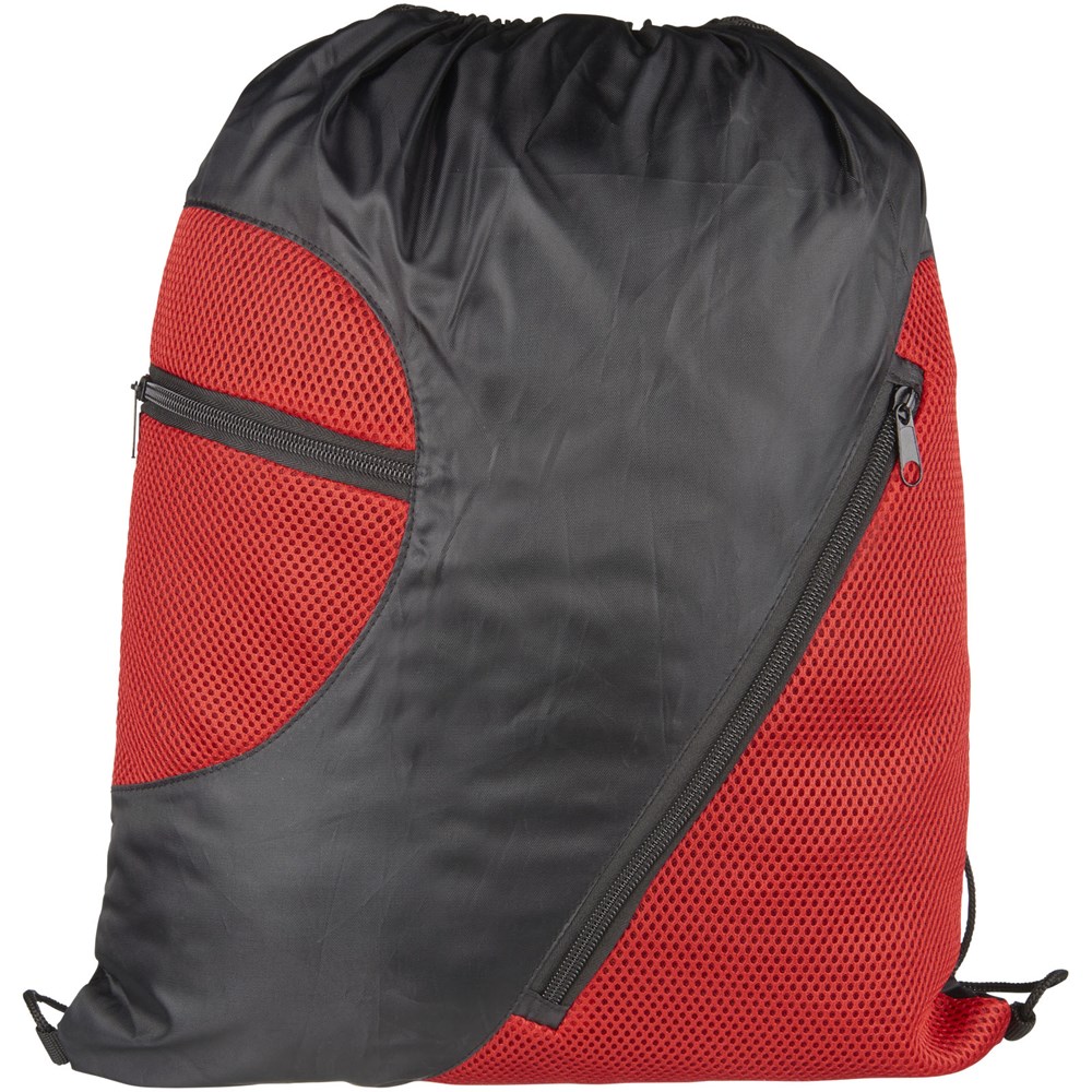 Großes Hauptfach mit Kordelzug. Zwei Fronttaschen aus Netz mit Reißverschluss für zusätzlichen Stauraum.