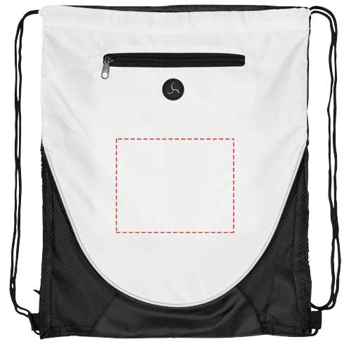 Offenes Hauptfach mit Kordelzugverschluss. Reißverschlusstasche vorne mit Ohrhöreröffnung.