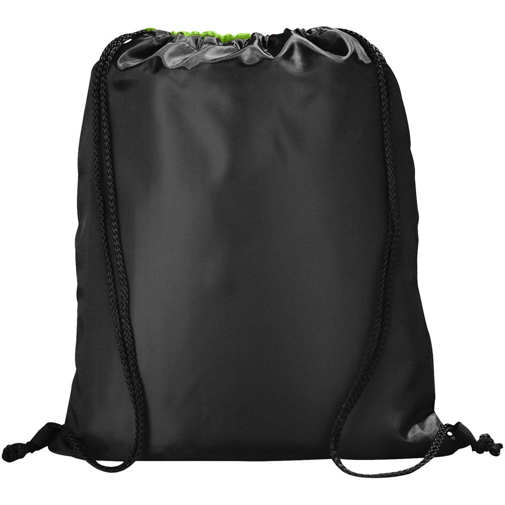 Offenes Hauptfach mit Kordelzugverschluss. Reißverschlusstasche vorne mit Ohrhöreröffnung.
