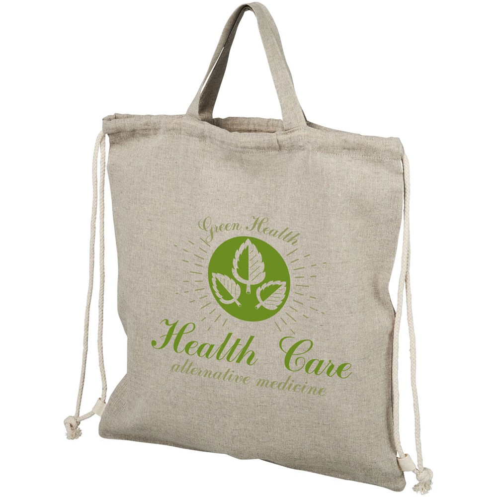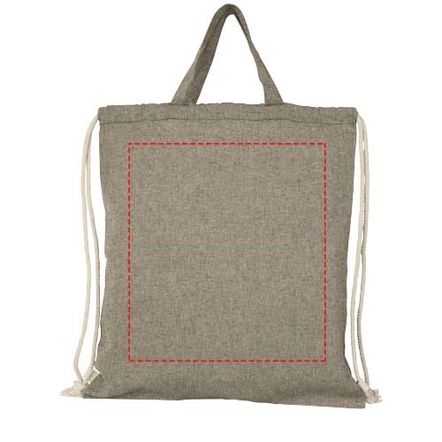 Rucksack aus 150 g/m² recycelter Baumwolle und recyceltem Polyester. Recycelte Baumwolle wird aus Verbrauchsabfällen hergestellt, die während des Schneidevorgangs in Textilfabriken anfallen. Ähnliche Farben werden miteinander vermischt, sodass keine zusätzliche Färbung erforderlich ist. Großes Hauptfach mit Baumwollkordelzug in Naturfarbe. Ausgestattet mit zwei Griffen mit einer Höhe von 14 cm. Beständigkeit bis zu 5 kg Gewicht. Es kann zu geringfügigen Farbveränderungen des eigentlichen Produkts kommen, die auf den Produktionsprozess zurückzuführen sind.