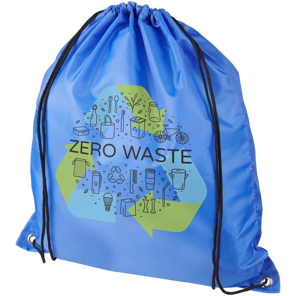 Langlebige Tasche aus 100 % recyceltem Kunststoff, der zur Reduzierung von Kunststoffabfällen beiträgt. Jede Tasche wird aus 3,5 recycelten PET Flaschen hergestellt. Großes Hauptfach mit Schnürverschluss in schwarzer Farbe. Kapazität: 9 Liter, Beständigkeit bis zu 5 kg Gewicht.