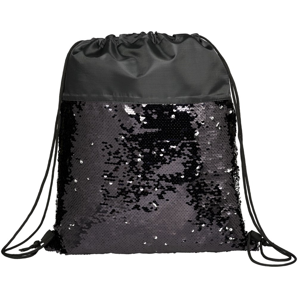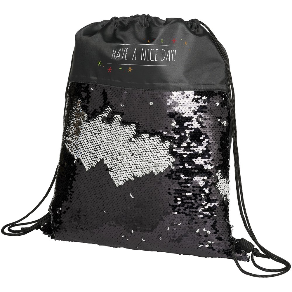 Auffälliger, mit Pailletten verzierter Kordelzug-Rucksack, der umgedreht werden kann, um 2 Farben zu zeigen. Ausgestattet mit einem offenen Hauptfach mit Cinch-Verschluss.