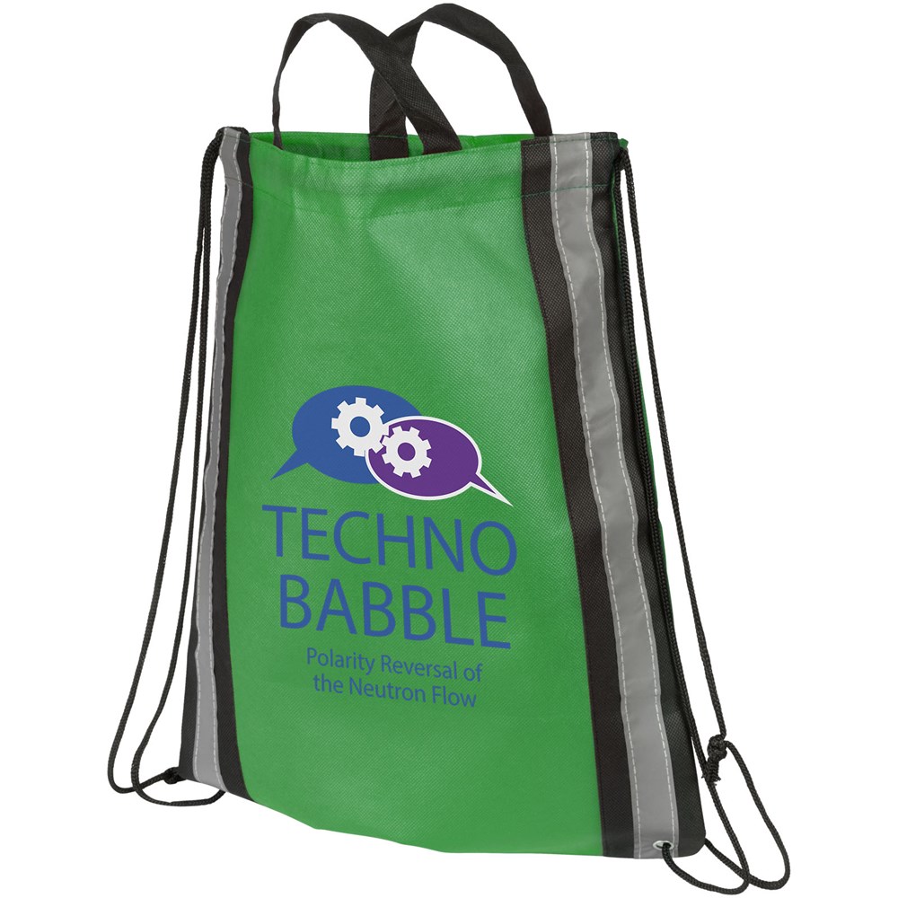 Die PP-NonWoventasche mit Kordelzug verfügt über reflektierende Streifen an jeder Seite, ideal um Ihrer Marke mehr Sichtbarkeit zu verschaffen.