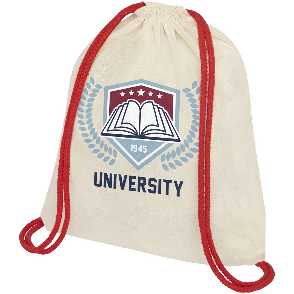 Oregon 100 g/m² Sportbeutel aus Baumwolle mit farbigem Kordelzug
