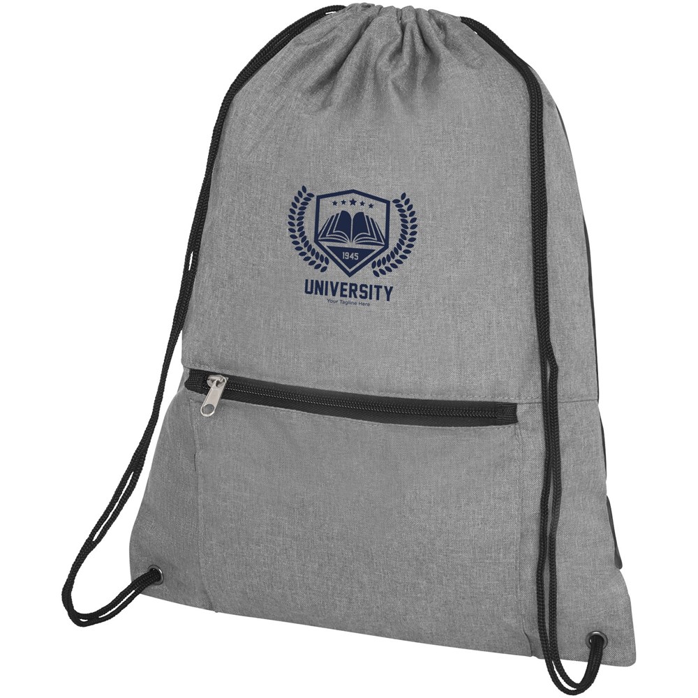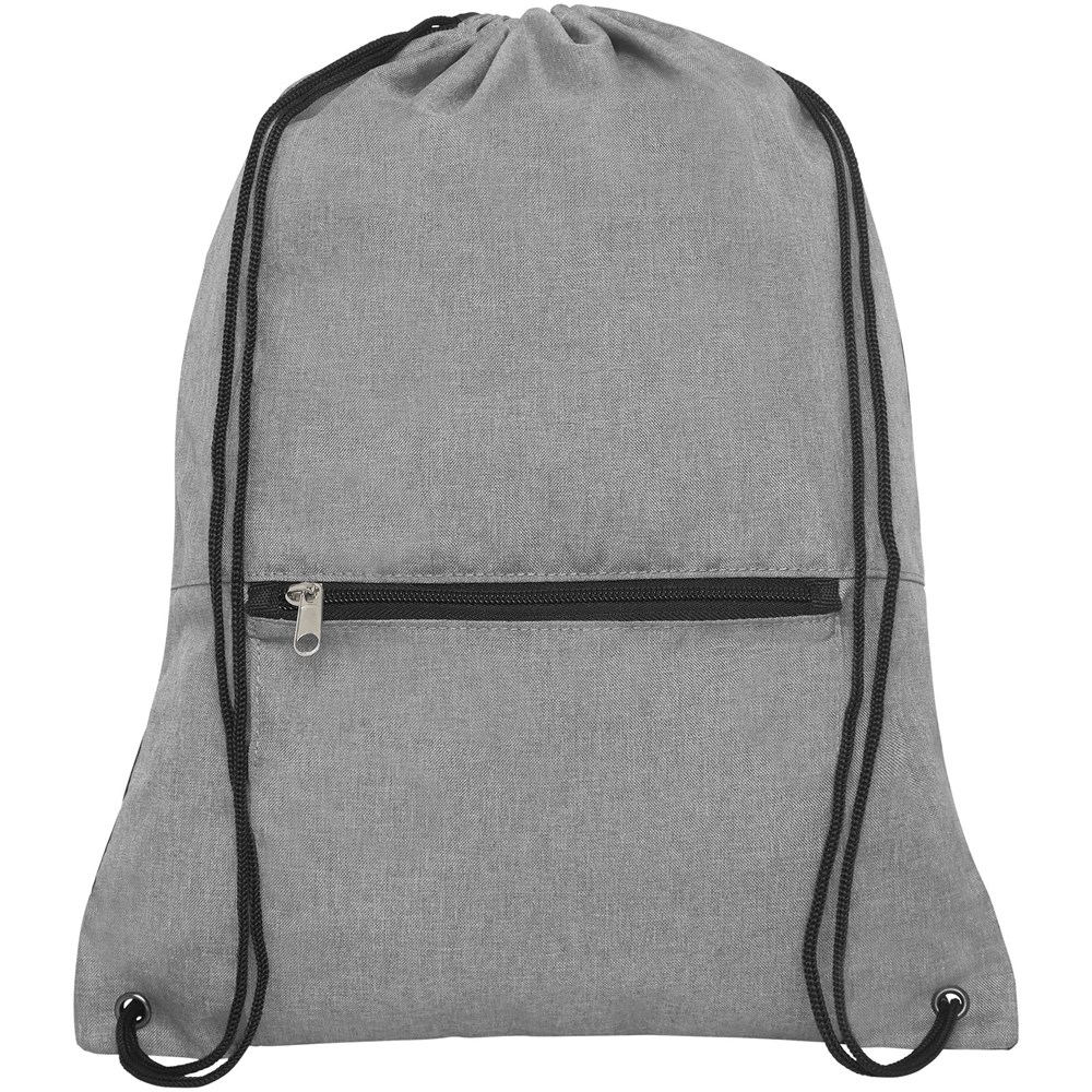 Sportbeutel mit großem Hauptfach mit Kordelzugverschluss in schwarzer Farbe. Mit meliertem Farbeffekt. Ausgestattet mit einer Fronttasche mit Reißverschluss, in die der Rucksack gefaltet und aufbewahrt werden kann. Beständigkeit bis zu 5 kg. Es kann zu geringfügigen Farbveränderungen des eigentlichen Produkts kommen, die auf die Beschaffenheit der Gewebefarbstoffe, Gewebe und Drucke zurückzuführen sind.