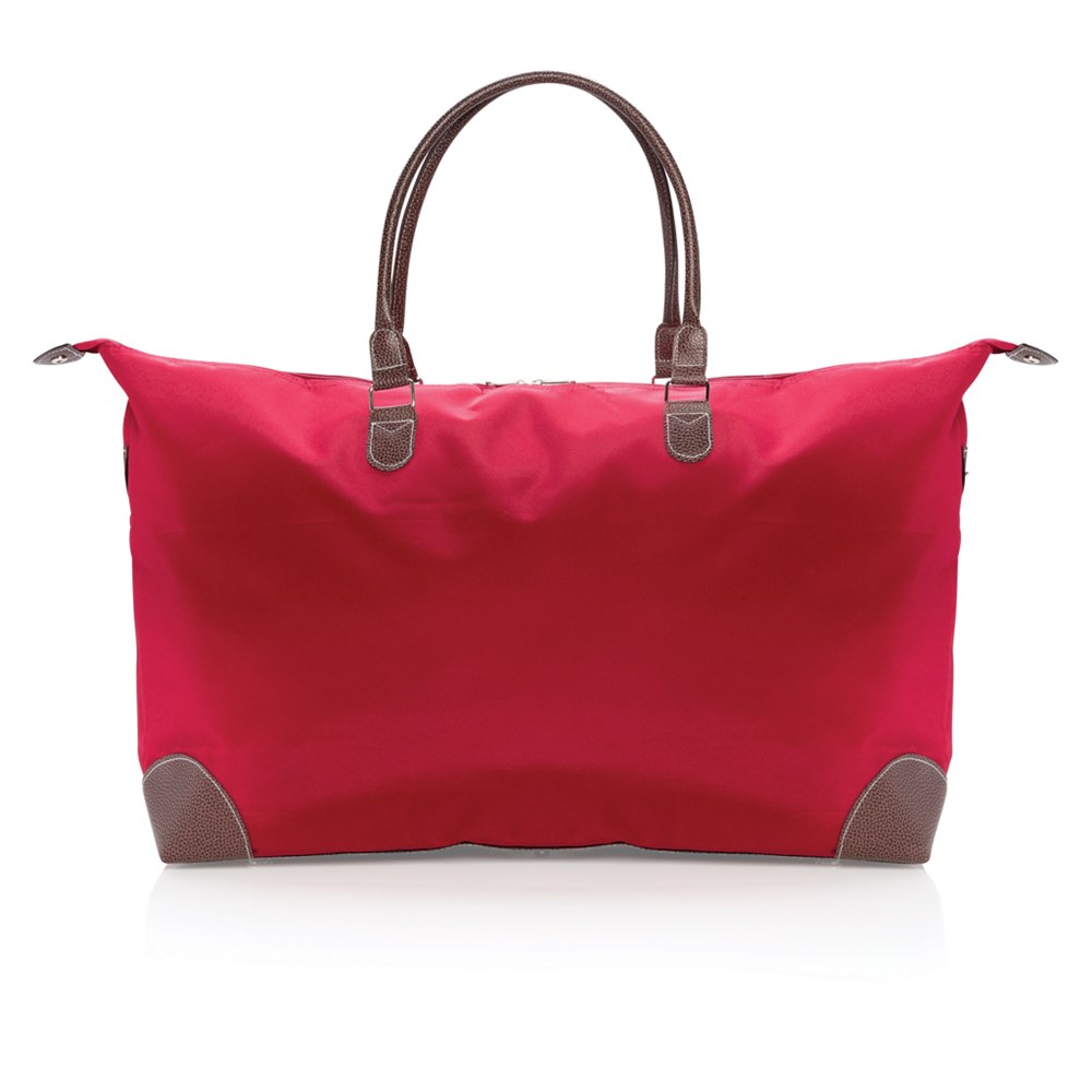 Gehen Sie stylisch auf Reisen und haben Sie all Ihre Kleidung und Accessoires ordentlich in dieser sportlich-eleganten Wochenendtasche aus glattem Mikrofaser dabei.
