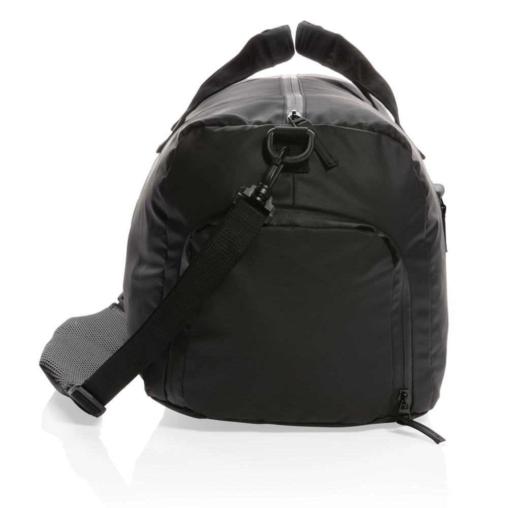 Einfach stylisch ist diese ganz in schwarz gehaltene Wochenendtasche aus PU mit einem großen Hauptfach. Handgepäckstauglich. PVC-frei.