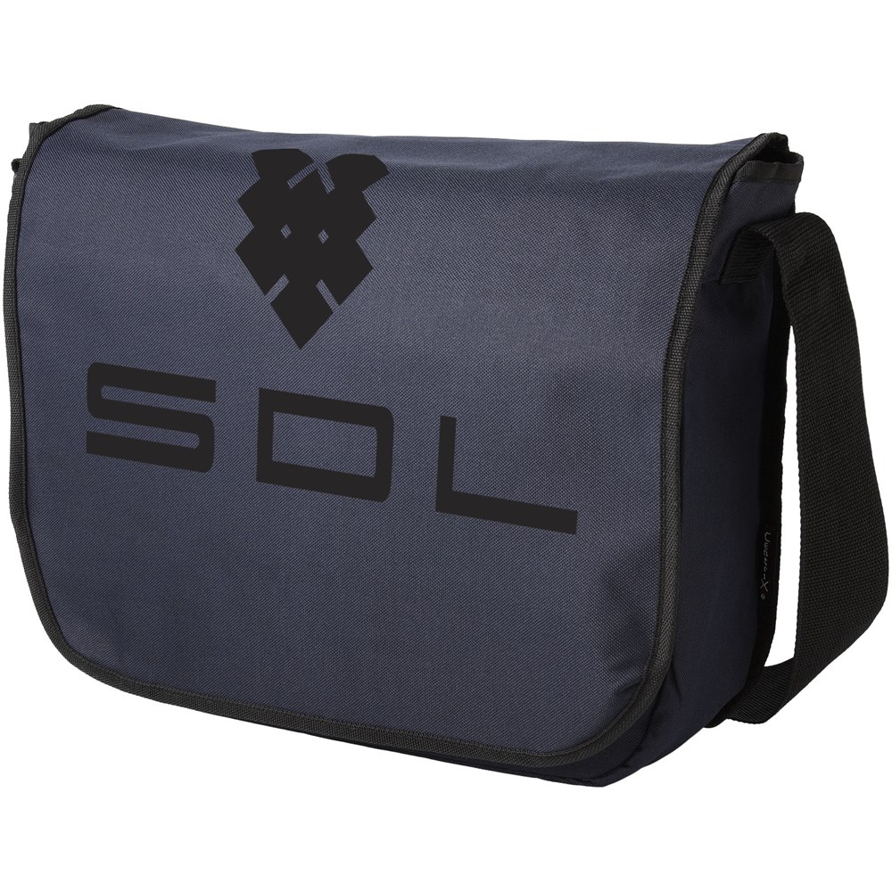 Umhängetasche mit einstellbarem Schulterriemen, Klappe mit Klettverschluss, großen Hauptfächern, kleinem Reißverschlussfach und mehreren Fächern für Zubehör.