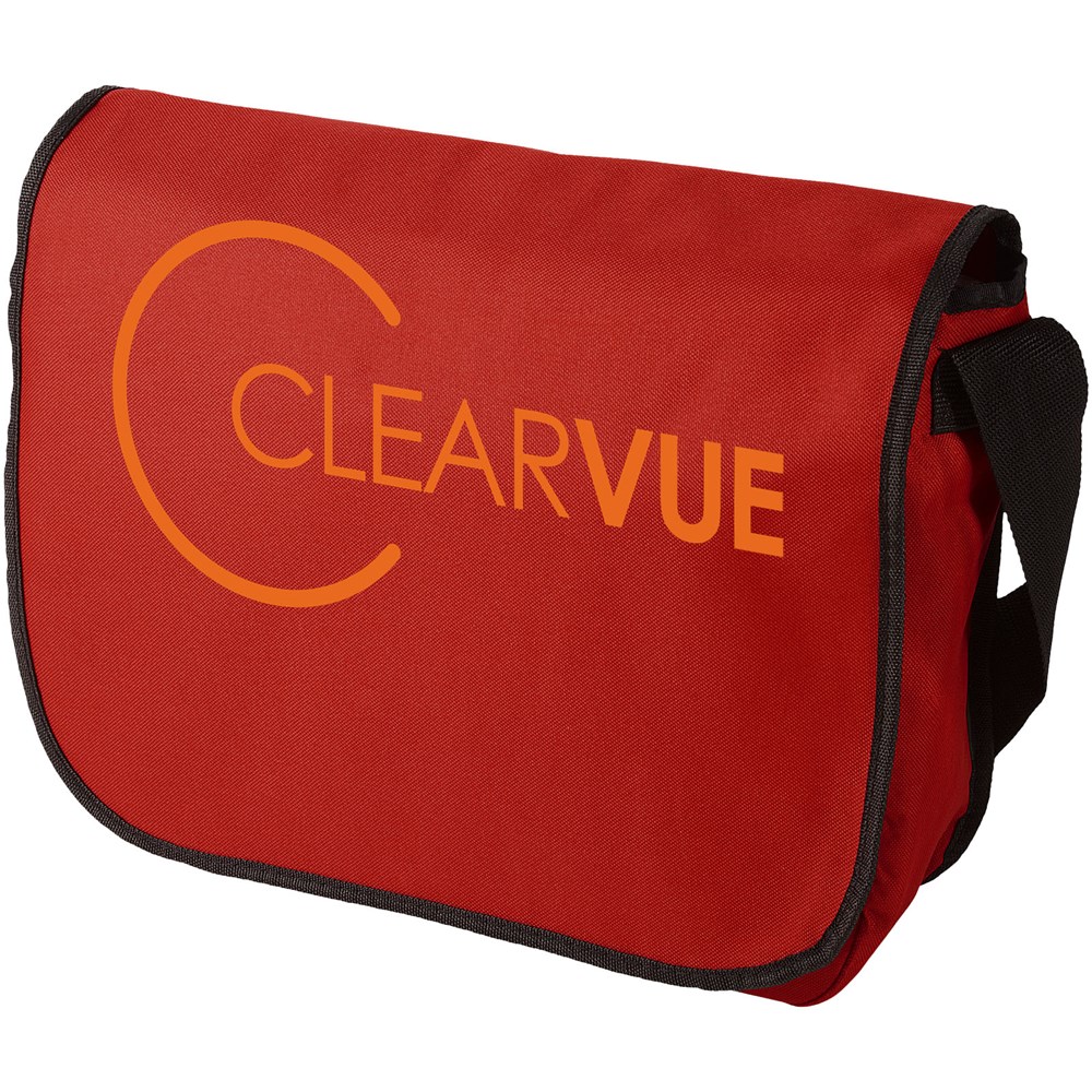 Umhängetasche mit einstellbarem Schulterriemen, Klappe mit Klettverschluss, großen Hauptfächern, kleinem Reißverschlussfach und mehreren Fächern für Zubehör.