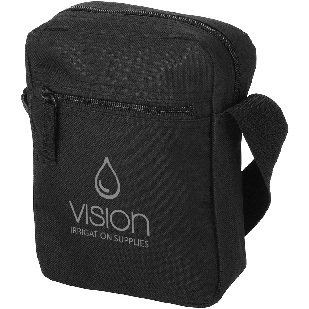 Kleine trendige Tasche mit einstellbarem Schulterriemen, Hauptfach mit Reißverschluss und Fronttasche mit Reißverschluss.