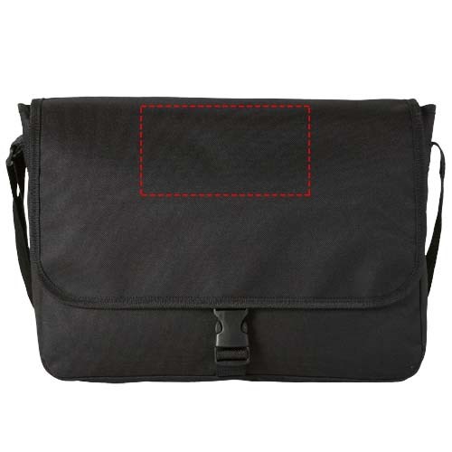 Schultertasche mit offenem Hauptfach, wird mit einer Klappe mit Schnallenverschluss verschlossen. Verstellbarer Schulterriemen.