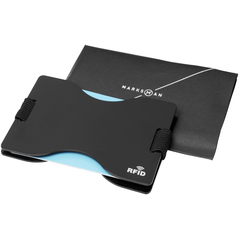 Der Kartenhalter mit RFID-Blockier-Technologie schützt Ihre Karten vor Identitätsdiebstahl, Bruch und Beschädigung. Kann bis zu 12 Karten aufnehmen. Präsentiert in einer Marksman Geschenkhülle.