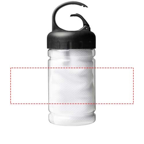 Schnell einziehendes, schnell trocknendes und waschbares kühlendes Handtuch aus starkem und strapazierfähigem Polyester, perfekt um während des Trainings oder bei allen Outdoor-Aktivitäten kühl zu bleiben. Wird in einem PET-Behälter mit Tragegriff und integriertem Karabinerhaken für einfaches Tragen geliefert. Erhältlich in 5 frischen Farben. Große Deko-Logofläche auf dem Behälter, Dekoration auch auf dem Kühlhandtuch selbst möglich. Größe 30 x 80 cm.